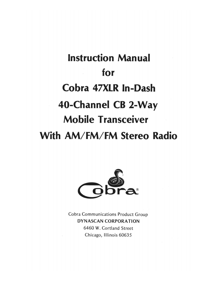 Cobra_47XLR_(Manual操作说明书手册)找手册网8小时前发布关注私信5.12MB24页025Cobra_47XLR_(Manual操作说明书手册)此内容为付费资源,请付费后查看¥19¥21黄金会员免费钻石会员免费立即购买您当前未登录!建议登陆后购买,可保存购买订单付费资源 第1页 / 共24页 第2页 / 共24页 第3页 / 共24页 第4页 / 共24页 第5页 / 共24页 第6页 / 共24页 第7页 / 共24页 第8页 / 共24页 第9页 / 共24页 第10页 / 共24页 试读已结束,还剩14页,您可下载完整版后进行离线阅读 THE ENDCOBRA 文本预览 Cobra 47XLR In-Dash40-Channel CB 2-WayMobile TransceiverWith AM/FM/FM Stereo RadioCobra Communications Product GroupDYNASCAN CORPORATION6460 W.Cortland StreetChicago,Illinois 60635 查看更多 收起部分 喜欢就支持一下吧收藏