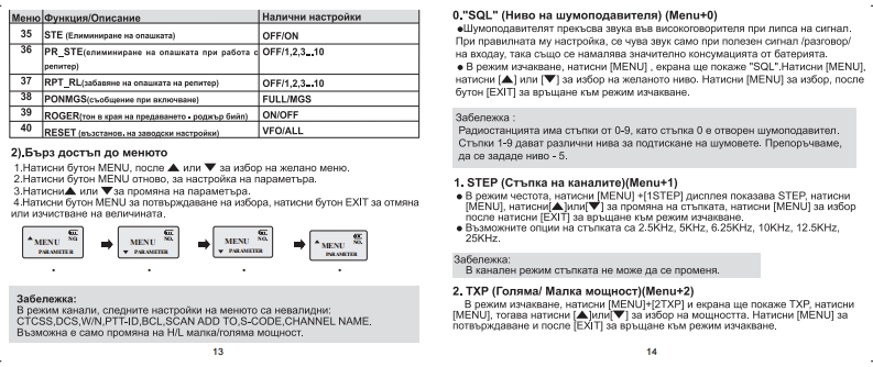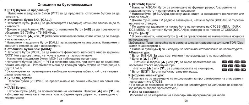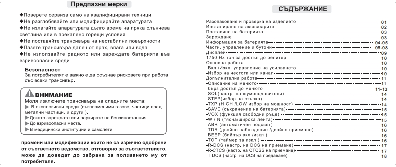 MO米e na nonene no HHBa Ha w3T4 BaHe npeaMu山aBa山HOPMHTE Ha FCC3a ManaraHe Ha B4 H3nbyBaHna.O6WN AHHN3a na cTe chrypHH.48 HHBaTa Ha w3naraHe Ha Bu 8HeprMAHw noneTae MHKPa-MMHMaTpeH MYnTH6aHA FM TpaHcHnbpca n paspeweHata HopMa 3a npoecnoHanwa ynotpeba,nmwary ceGDa3山MPCH4GCT0TGHD5XB司T Ha npucMaHc,ocHrypanaw noka门H司nBycTpaHHa nK6MTencka paamoapbaka Hapen coc HecpaaHHManpnabpxanre KbM cneAHnTe npenopbkn:B3MOXHOCT 38 Habn n6HMe.HMe U6HMM nokynKaTa Ha HawnaHE M3non3BaATe panHoTo 683 MOHTHpaHa nonxonRwa aHTeHa.T.K.TOBaMoxe na noBpean paaHoTo H na npMyMHM noBHWeHM HHBa Ha Bu nb48HHe.nK TaKaBa cneunanHo onpeneneHa oT npoM3BOAMTenn 38 paooTa c Ta3MWHOOPMAUMA 3A 6E30nACHA PABOTAanapaTypa.BaweTe-UV-E5 paano reHepmpa enexTpoMarHNTHa eHepra B■pexM Ha npenaBaHe.M30enMeTo e npoekTmpaHo M onpeneneHonnp).ManbuBaHe 3a noBeve oT 50%OT BpeMeTo Moxe Aa npeanwM HHBaTa3a "npodecnoHanHn uenn caMo,KOCTO O3Hayana,4e TpAbna AaonpeneneHM OT HopMHTe 38 cboTBeTCTBMe.PaAMoTo e Ha npen888He.ce nonsBa no Bpeme Ha TpyAoBa saeToCT OT xopa sano3HaTM cxoraTo "TX indicator"CBBTHB 48088HO.Pe米MM"np8 Qa Ba H8GEDHKMTI0pMCx0BeTe,Mn0H84MHH8M8n月B日山Te3 M DHCKOB日.T0Bapa口MOocbwecTaasa,upe3 HaTnckame Ha 6yTon 'PTT.BMHATM ApbxTe aHTeHaTa Ha noHe 60cm OT TAnOTo,KoraTo cTe Hacpeaa.npenaB8He.ManenmeTo e TecTBaHO M OTroBapa Ha orpaHw4eHMATa Ha FCC 38 w3naraHeHa BH eHeprwa3a“门po中BCMOHanHM uenH caMo'.B gonbnHeHne,BaweToM36poenara go Tyk MHopMauna 3ano3Haaa noTpe6nTena c nanarameTo HaUV-E5 oTroaapa Ha cnegHMTe cTaHgapTn M npenopbkn cBbp3aHn cBu M3nb4BaHMA.M Kakeo na ce npaBw 3a na ce ocmrypn anapaTypaTa na日nHAHHeT0HaB4日He0rMAM日n.MarHMTHH non日Ta M OueHKa Bb3A日ACT日MeT0PaDOTM B HBO6XOAMMMTe rPaHMUM M HODMM.HM Bbpxy 4088Ka-FCC OET GneTMM 65 peA.97-01 npmn.C.Duenka Ha cboraererBneroEneKTpoMarHNTHa CbBMeCTHMOCT/B3aMMogenCTBMec npenopbknTe Ha FCC 38 ManaraHe Ha paAno eCTOTHWno Bpeme Ha w3nb4BaHe.BaweTo UV-E5panno reHepupa Bu eHeprna KoaToeneKTpoMarHMTHM noneTa BbpXy 4086Ka.M0属GAa贝DBBL段贝DCMy出eHM开C ADYTH YCT月0 CTBa HNM CHCTEMM.3aANSI (C95.1-1992),IEEE cTaHAapT 3a 6esonacHM HMBa BbB Bpbaka cnpegoTspataaane Ha Toaa,M3xn.DaAMOTO B 30HM KbAeTO HMa npMsHaun TOBaM3naraHe Ha HoBeKa Ha paAMo-eCTOTHN noneTaAB ce cny4M.HE onepmpanTe c npenaBaTen B 30HW KOMTO ca HyBCTBMTenHM3kHz ao 300GHz.Ha BnBKTDOMarHHTHM nb46HMA.KaTO OOnHWUM,CaMOneTH M neTwwa.ANSI (C95.3-1992),IEEE npenopwyaHa npakTuxa 3a Mamepnane HanoTeHunanHo onaCHn 38 oBeKa BHCOKONeCTOTHN M MHKDOBbnHOBHnpocecHoHanHa/KoHTponmpaHa ynoTpe6aeneKTpoMarHMTHM noneTap日A8BaT nAT ce M3nOn3B8 B cny48MTeKrBT0Cny米BOHMTe8 roCneAHMTe akcecoapn ca oTopMaxpaHn 3a manonanaHe c npoayta..MpMCKBaT.a xopata ca HanbnHo 3ano3HaTn c pMCKoBeTe M MoraT naMsnonsBaHeTo Ha akcecoapn pa3nKHM OT ynomeHaTMTe TyKy门Pa米w月自aT KOHTpON Bbpxy T列KHOTO M3 naraHe Ha Te3 M pMcKoBe.