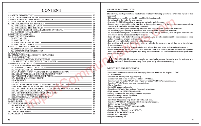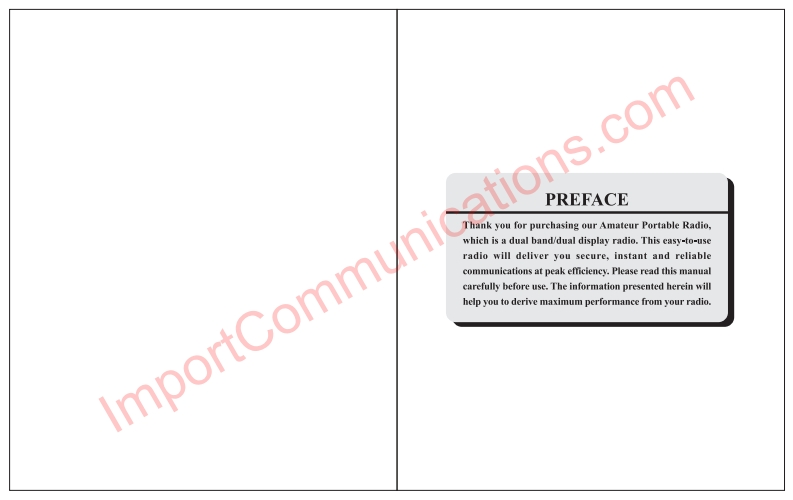 uv5r操作说明书手册找手册网29天前发布关注私信8.71MB11页046uv5r操作说明书手册此内容为付费资源,请付费后查看¥19¥21黄金会员免费钻石会员免费登录购买付费资源 第1页 / 共11页 第2页 / 共11页 第3页 / 共11页 第4页 / 共11页 第5页 / 共11页 第6页 / 共11页 第7页 / 共11页 第8页 / 共11页 第9页 / 共11页 第10页 / 共11页 试读已结束,还剩1页,您可下载完整版后进行离线阅读 THE END宝峰 文本预览 VHF/UHF FMTRANSCEIVERImportCommunicatioUSER'S MANUALFC CE0678sDUAL BAND/DUAL WATCHCTCSS TONE SCANNING▣5一DIGITAL SIGNALPROCESSING SYSTEM 查看更多 收起部分 喜欢就支持一下吧收藏