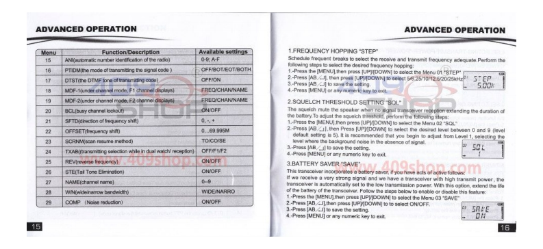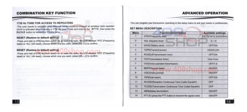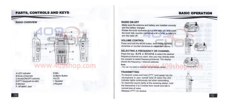 EAO尸三ΛG寶锋TWO-WAY RADIO4日9AUVB5BAOFENGUSER'S MANUALwww.409shDual Band,Dual Display,Dual StandbyPriority Channel ScanningDTMF Encoded四888.888FM Radio Built-in回88888BHEmergency AlarmNoise ReductionU/V Cross Band Dual Watch1750HZ Relay Forwarding Confirmed