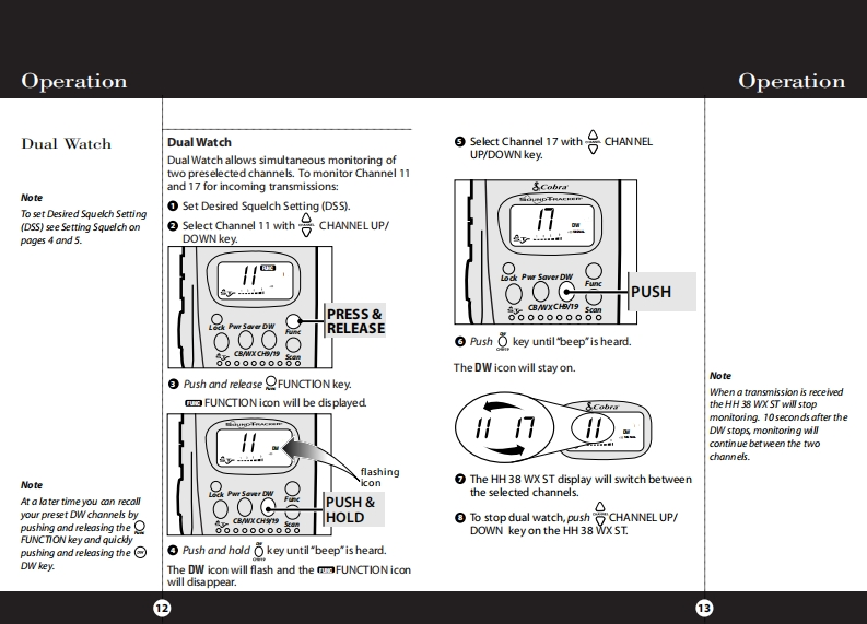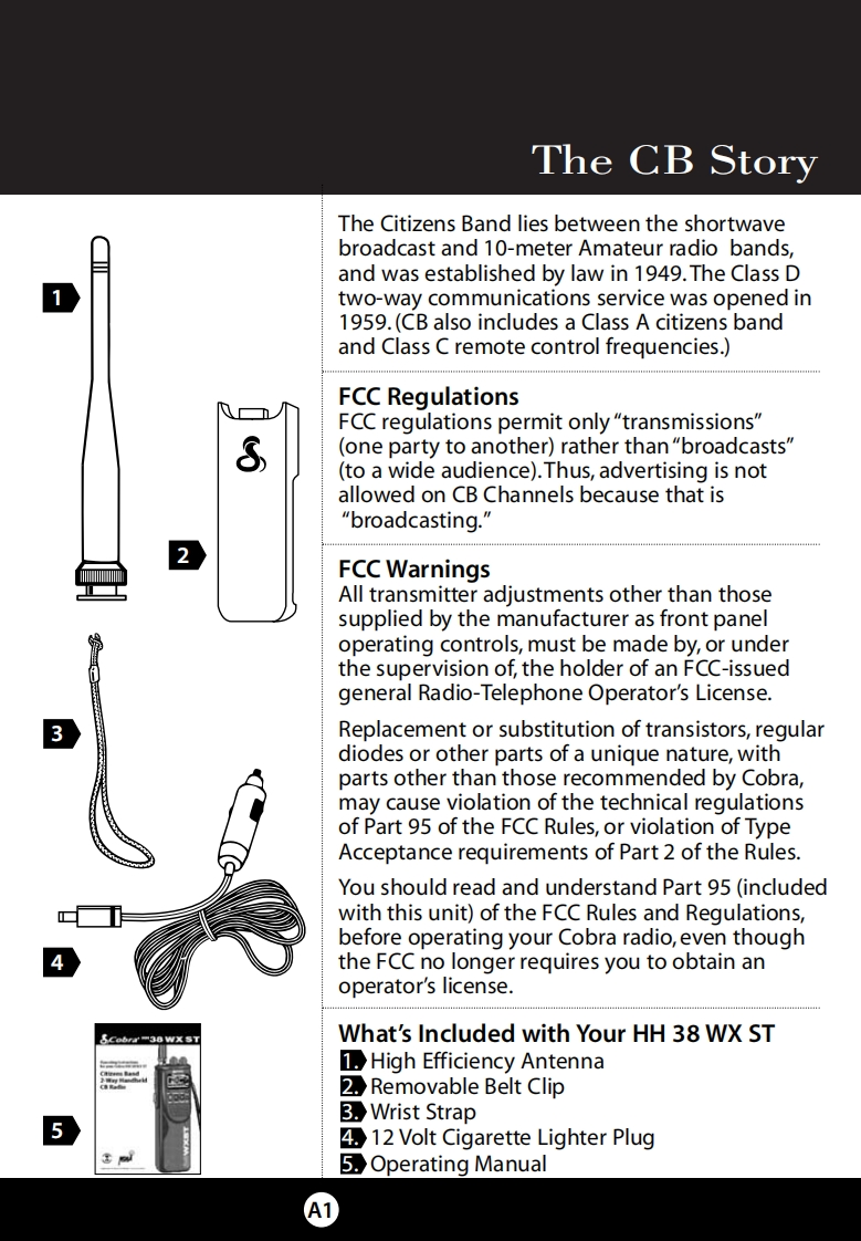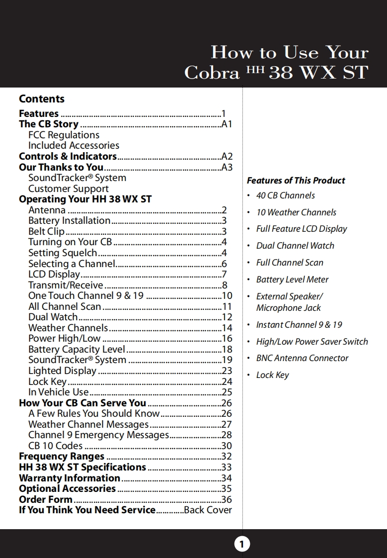cobra_hh_roadtrip_用户使用操作说明书手册找手册网8小时前发布关注私信0.68MB23页024cobra_hh_roadtrip_用户使用操作说明书手册此内容为付费资源,请付费后查看¥19¥21黄金会员免费钻石会员免费立即购买您当前未登录!建议登陆后购买,可保存购买订单付费资源 第1页 / 共23页 第2页 / 共23页 第3页 / 共23页 第4页 / 共23页 第5页 / 共23页 第6页 / 共23页 第7页 / 共23页 第8页 / 共23页 第9页 / 共23页 第10页 / 共23页 试读已结束,还剩13页,您可下载完整版后进行离线阅读 THE ENDCOBRA 文本预览 SCobra H38 WX STOperating Instructionsfor your Cobra HH 38 WX STCitizens BandSCobraSOUNDTRACKER4UNC2-Way HandheldPWR SAVE WXCB RadioLockPwrSaver DWCB/WX CH9/19 Scan"Ingenious Products for Easier Communication." 查看更多 收起部分 喜欢就支持一下吧收藏