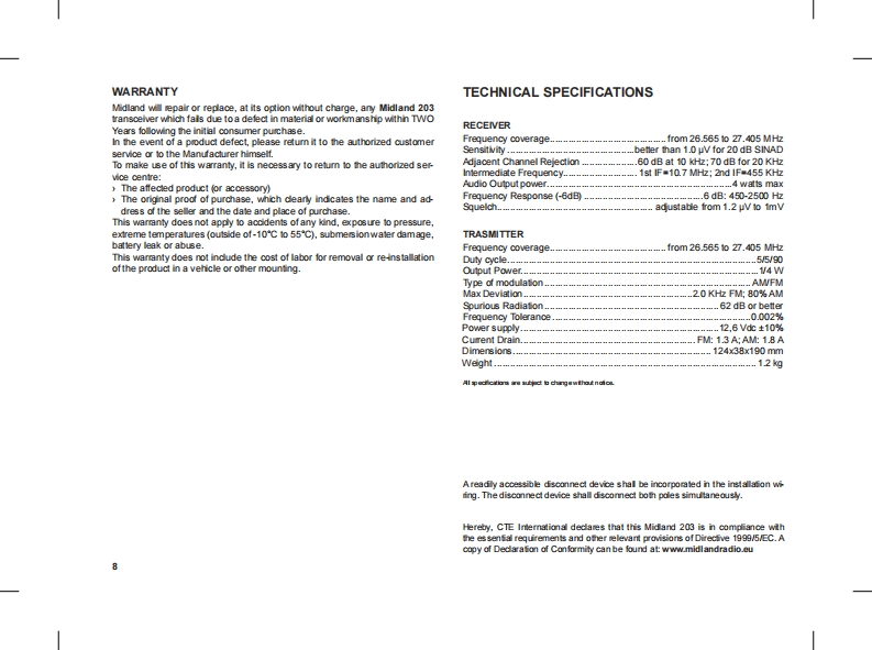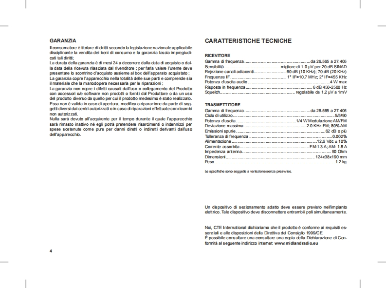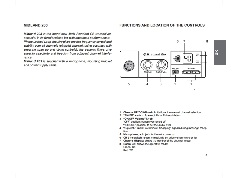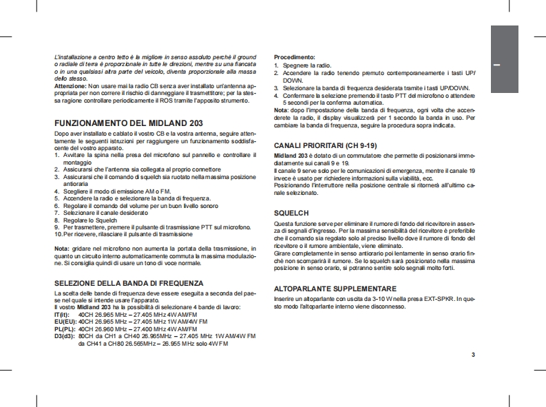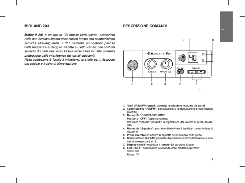 Ricetrasmettitore CB.CB Transceiver CB Funkgerat Transceptor CB.Emetteur-recepteur CBnounoEKrnc CB.CB Zendontvanger.Radiotelefon CB.CB paAMocTaHymaMidland 203GUIDA ALL'USOINSTRUCTION GUIDEBEDIENUNGSANLEITUNGMANUAL DE INSTRUCCIONESGUIDE D'UTILISATIONMANUAL DE INSTRUCOES=△HrIEE XPHEHEGEBRUIKERS HANDLEIDINGINSTRUKJA OBSLUGIPyKOBOACTBO nonb3OBATEMIDLANDDownloaded from www.cbradio.nl