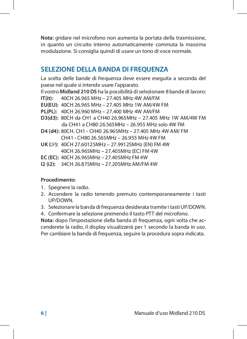 Midland_210DS_使用说明书手册_NL_DE_FR_ITA_ESP_RUS_PL_PT找手册网10小时前发布关注私信1.92MB78页023Midland_210DS_使用说明书手册_NL_DE_FR_ITA_ESP_RUS_PL_PT此内容为付费资源,请付费后查看¥19¥21黄金会员免费钻石会员免费立即购买您当前未登录!建议登陆后购买,可保存购买订单付费资源 第1页 / 共78页 第2页 / 共78页 第3页 / 共78页 第4页 / 共78页 第5页 / 共78页 第6页 / 共78页 第7页 / 共78页 第8页 / 共78页 第9页 / 共78页 第10页 / 共78页 试读已结束,还剩68页,您可下载完整版后进行离线阅读 THE ENDMidland 文本预览 Midland 21o DSRicetrasmettitore CBCB TransceiverCB FunkgeratTransceptor CBEmetteur-recepteur CBRadio CB~ΠoμToδEKTng CBCB ZendontvangerRadiotelefon CB●●IDLAND 21005ON-OFENOLUNE经IDLANDDownloaded from www.cbradio.nl 查看更多 收起部分 喜欢就支持一下吧收藏