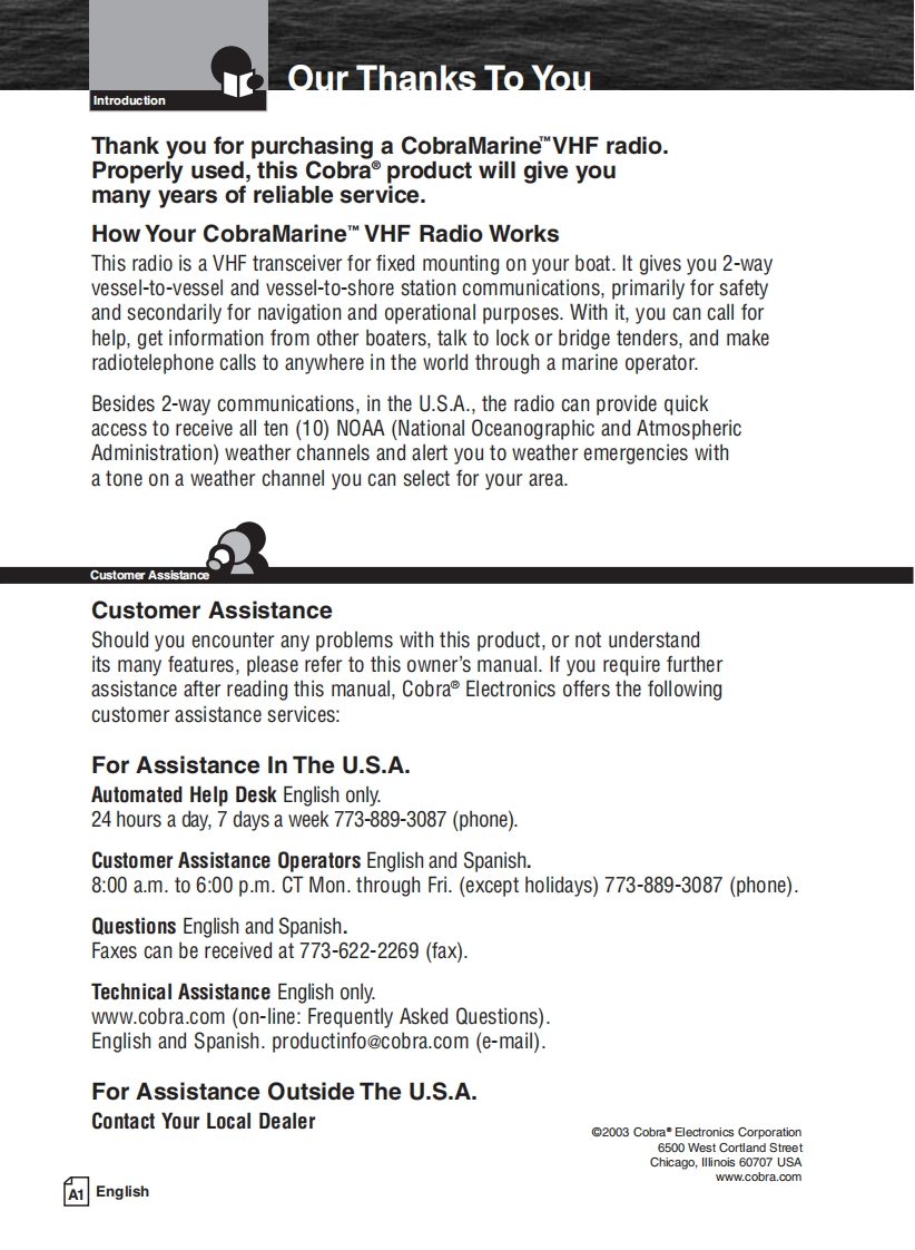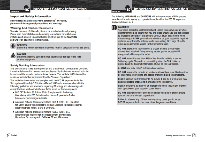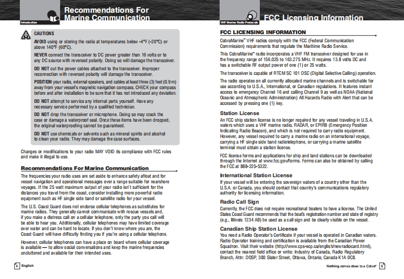 Cobra_MR_F55_Manual操作说明书手册找手册网8小时前发布关注私信0.94MB38页022Cobra_MR_F55_Manual操作说明书手册此内容为付费资源,请付费后查看¥19¥21黄金会员免费钻石会员免费立即购买您当前未登录!建议登陆后购买,可保存购买订单付费资源 第1页 / 共38页 第2页 / 共38页 第3页 / 共38页 第4页 / 共38页 第5页 / 共38页 第6页 / 共38页 第7页 / 共38页 第8页 / 共38页 第9页 / 共38页 第10页 / 共38页 试读已结束,还剩28页,您可下载完整版后进行离线阅读 THE ENDCOBRA 文本预览 SCobraMARN三MOwner's ManualWATERPROOF5开X::拉VHF MARINE RADIOMR F55Nothing comes close to a CobraEnglish 查看更多 收起部分 喜欢就支持一下吧收藏