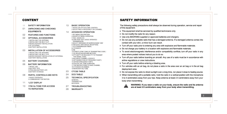 PREFACEThank you for purchasing Amateur Portable Radio,which is a dual bandradio.This easy-to-use radio will deliver you secure.instant and reliable com.munications at peak efficiency.Please read this manual carefully before use.Theinformation presented herein will helo you to derive madmum performance fromyourr800