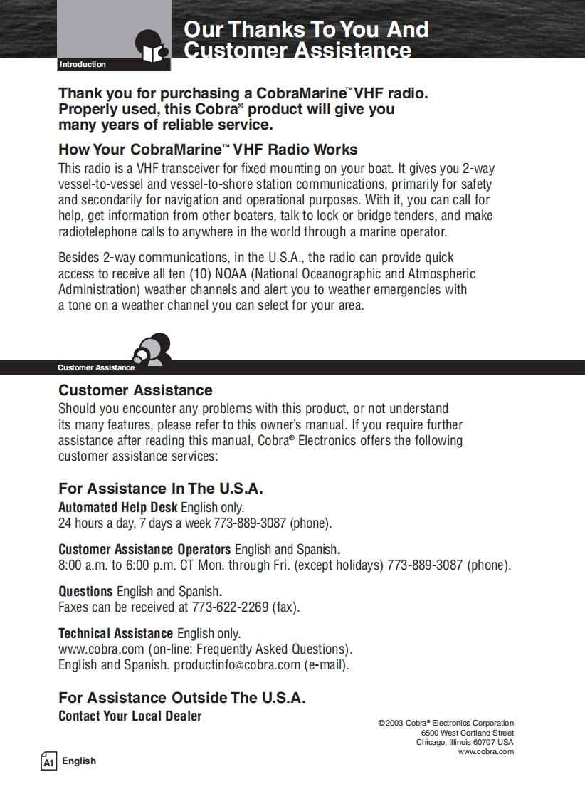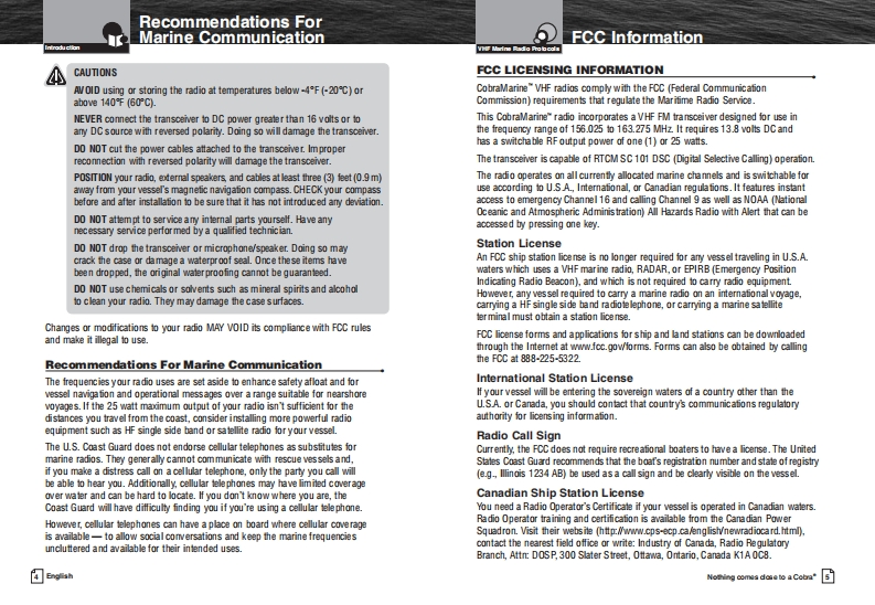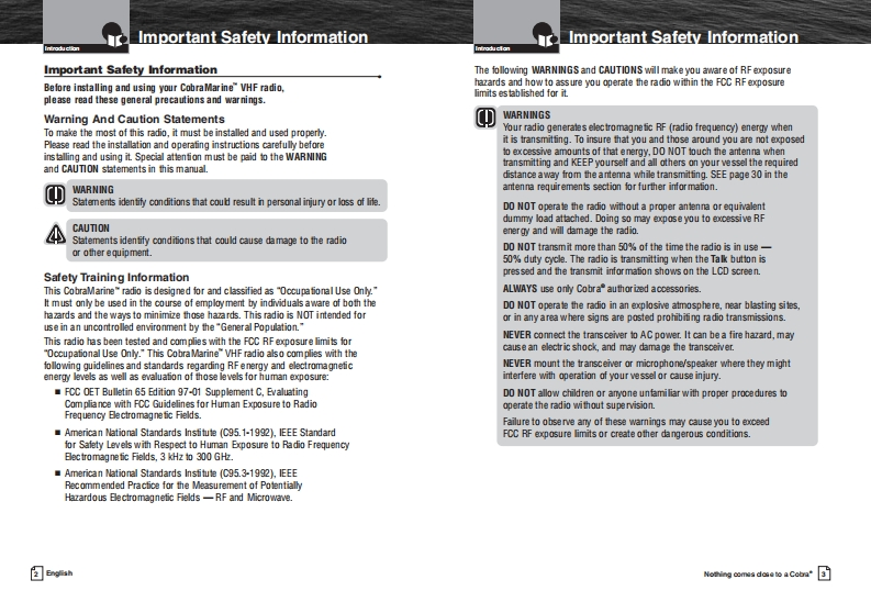Cobra_MR_F75_Manual操作说明书手册找手册网8小时前发布关注私信0.99MB40页037Cobra_MR_F75_Manual操作说明书手册此内容为付费资源,请付费后查看¥19¥21黄金会员免费钻石会员免费立即购买您当前未登录!建议登陆后购买,可保存购买订单付费资源 第1页 / 共40页 第2页 / 共40页 第3页 / 共40页 第4页 / 共40页 第5页 / 共40页 第6页 / 共40页 第7页 / 共40页 第8页 / 共40页 第9页 / 共40页 第10页 / 共40页 试读已结束,还剩30页,您可下载完整版后进行离线阅读 THE ENDCOBRA 文本预览 SCobraMARN写MOwner's ManualWATERPROOF15916/9HIGHSConmHI/LO1104C25"53.438MVHF MARINE RADIOMR F75Nothing comes close to a CobraEnglish 查看更多 收起部分 喜欢就支持一下吧收藏