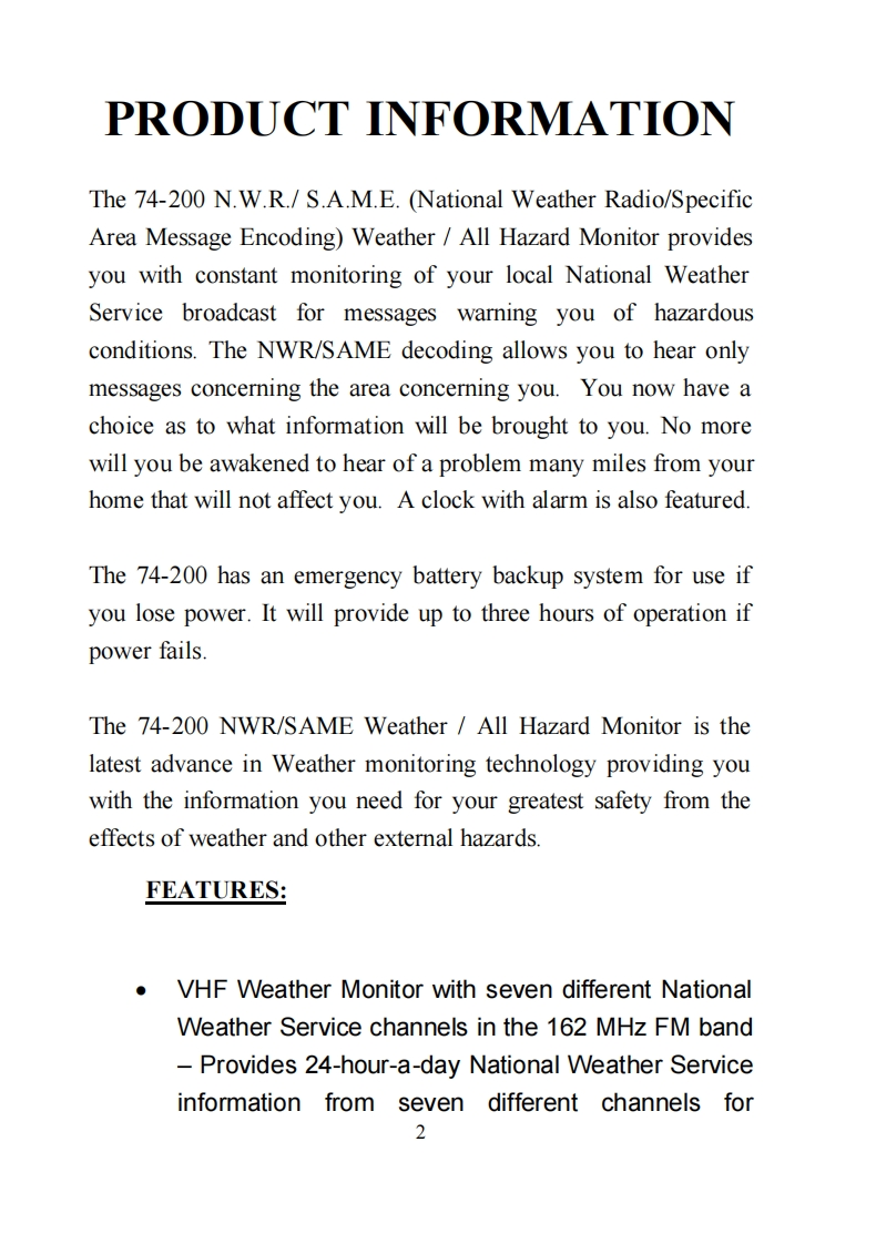 Midland_74-200_(Owners_Manual操作说明书手册)找手册网8小时前发布关注私信100.48KB30页043Midland_74-200_(Owners_Manual操作说明书手册)此内容为付费资源,请付费后查看¥19¥21黄金会员免费钻石会员免费立即购买您当前未登录!建议登陆后购买,可保存购买订单付费资源 第1页 / 共30页 第2页 / 共30页 第3页 / 共30页 第4页 / 共30页 第5页 / 共30页 第6页 / 共30页 第7页 / 共30页 第8页 / 共30页 第9页 / 共30页 第10页 / 共30页 试读已结束,还剩20页,您可下载完整版后进行离线阅读 THE ENDMidland 文本预览 IDLANSTATEMENTWERTHEROFFWATCHWEATHERALERTLAND 74-200 DIGITAL WEATHER RECEIVERModel 74-200Digital Weather Receiver withNWR-SAME decoding andDigital clock with alarm 查看更多 收起部分 喜欢就支持一下吧收藏