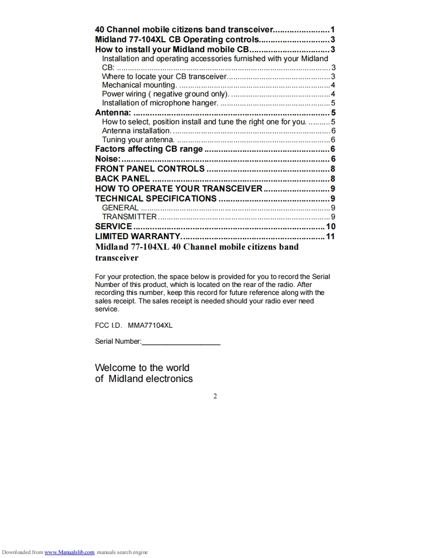 Midland_77-104XL_(Owners_Manual操作说明书手册)找手册网8小时前发布关注私信61.20KB11页042Midland_77-104XL_(Owners_Manual操作说明书手册)此内容为付费资源,请付费后查看¥19¥21黄金会员免费钻石会员免费立即购买您当前未登录!建议登陆后购买,可保存购买订单付费资源 第1页 / 共11页 第2页 / 共11页 第3页 / 共11页 第4页 / 共11页 第5页 / 共11页 第6页 / 共11页 第7页 / 共11页 第8页 / 共11页 第9页 / 共11页 第10页 / 共11页 试读已结束,还剩1页,您可下载完整版后进行离线阅读 THE ENDMidland 文本预览 77-104XLOwners Guide40 Channel mobile citizens band transceiverDownloaded from www.Manualslib.com manuals search engine 查看更多 收起部分 喜欢就支持一下吧收藏