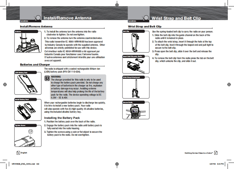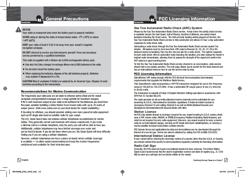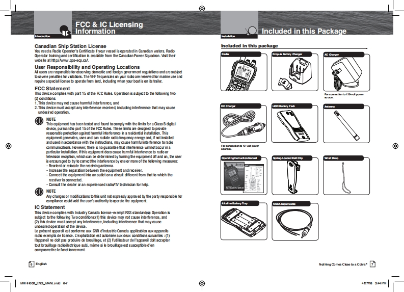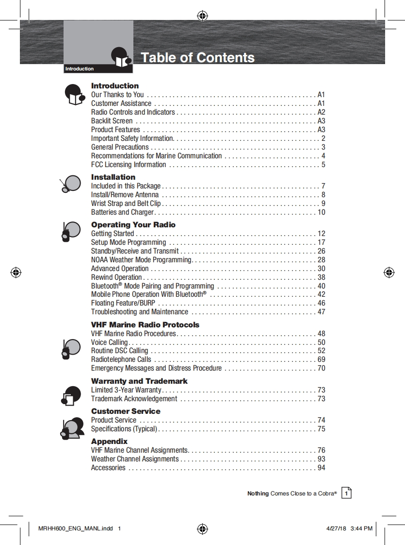 ®Our Thanks to You andRadio ControlsSCobraCustomer Assistance9and IndicatorsMARIEOur Thanks色Yeu●dtcipThank you for purchasing a Cobra Marine"VHF adio.OwrefalandlPropedy used1sCa边tPrO山et willl give you的ye量a耐eh业esevce.&Cobra热t与nd scond山南fo过女dmrd年rdnl山upa道.情善acin cill be hip pet inbes tion fomother boitars talk o locka bridpe lndira16and mike scicli时e维catb o anyuhare in the wa起hcu动虚dc年aiaida tao-cormricilod the sd金cin proride qick在ssto rc械通eN0M业nd位rg年址r国copharie Adri r由da时rdrr国hbr your areaGlobal Possioning Sytem (GPS)datidon heL四n国matinpatantl t铺ddw0 ator dicily wtha的文0适i适geu时dei民址dew飞u中ra过6rthe0风Customer Assistance16●香4tK的ncon9。4S0For Assistance in the U.S.A.paayhoimufarafd He中0ak由ha体第a5金dy了dahk-2-这c时四3-882-087 IphonVHF MARINE RADIOhin铺ch国重T乃边-△边MR HH600 FLT GPS BTkchnical an台chatb mAuppat/aahane-adcadting Coma Co baCda团回中