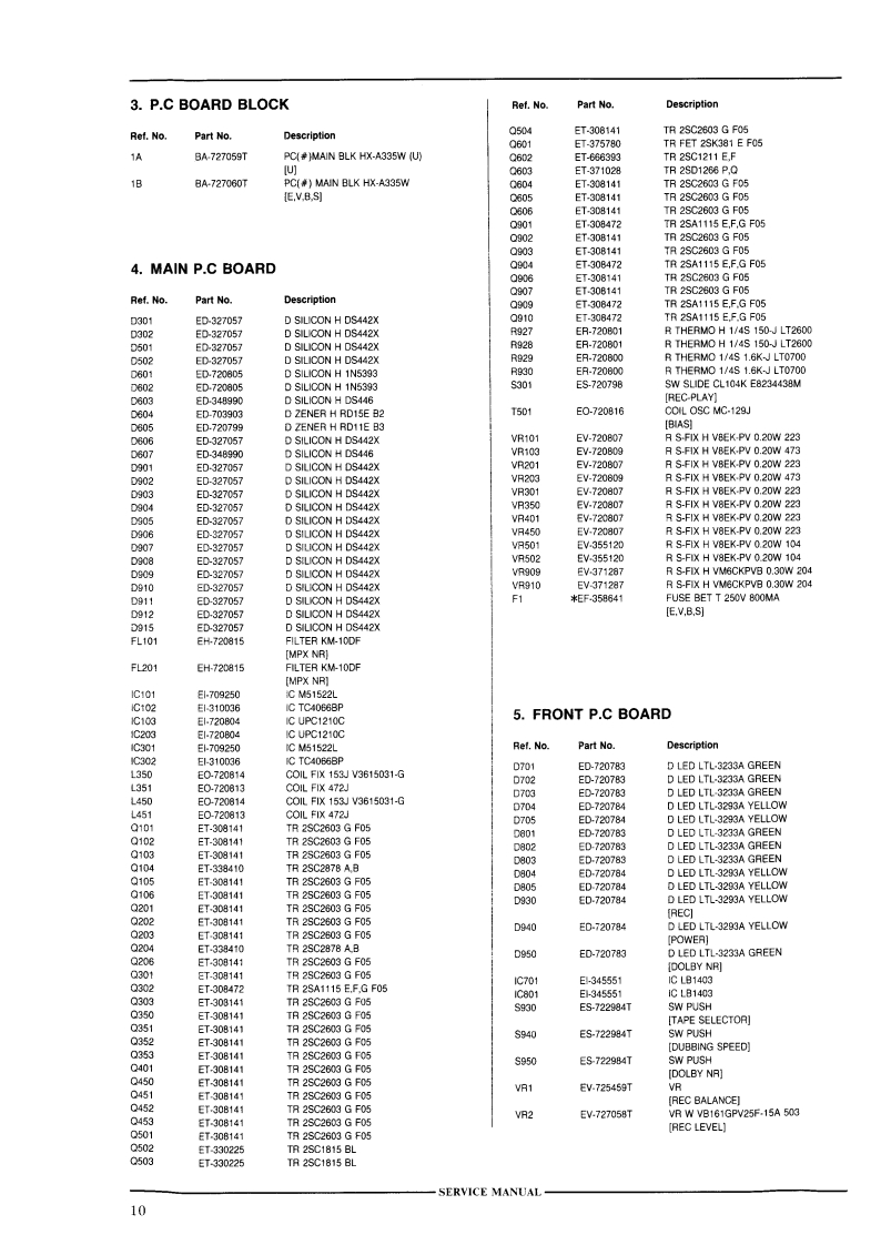 AKAI SERVICE MANUALAKAIE00o习wu0NC:3-IDOTAPE I草百道STEREO DOUBLE CASSETTE DECKMODEL HX-A335WSPECIFICATIONSTrack system..............4 track 2 channel stereoInput sensitivityHeadsHD head for playback×lImpedance,70 mV/50 k ohmsHD head for recordingPower requirements....220 V,50 Hz for Europeplayback×1Erase head×lMotors...DC motor 2 (for capstan&5o He for UK andAustraliareel)110V-120V/220V-240V.Wow&flutter…0.16%(DIN)S/N ..................57 dB (Measured via tape with50/60 Hz convertible forother countriespeak recording level)Dolby NR switch ON:Dimentions425(W)×132(H)×265(DyImproves up to 5 dB at 1 kHz,mm(16.7×5.2×10.4 inches)10 dB above 5 kHzWeight…4.4kg(9.71bs)THD...Less than 0.9Frequency responseStandard accessoriesNormal.....................30 Hz to 14,000 Hz 3 dBOperator's manualFor improvement purposes,specifications and design are subject to change without notice.Noise reduction manufactured under license from Dolby Laboratories Licensing Corporasion."Dolby"and the double-D symbol are trade of Dolby Laboratories Licensing Corporation.