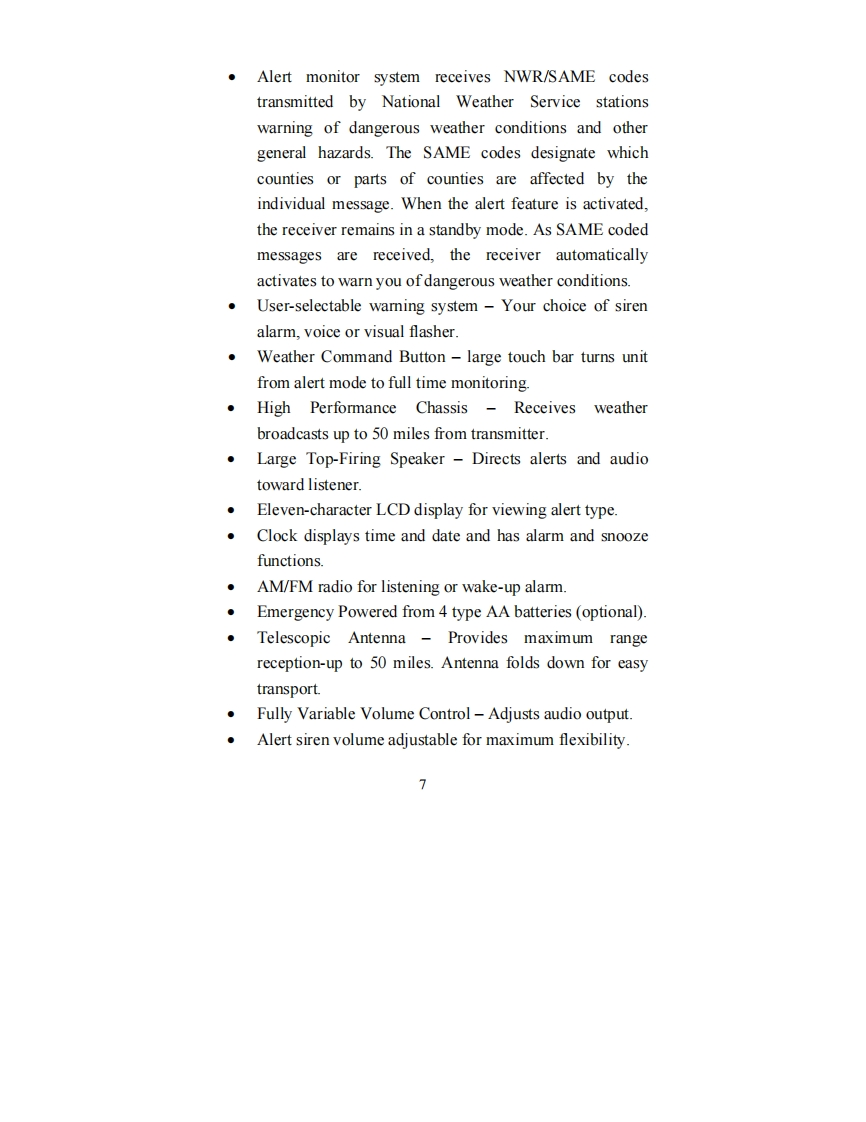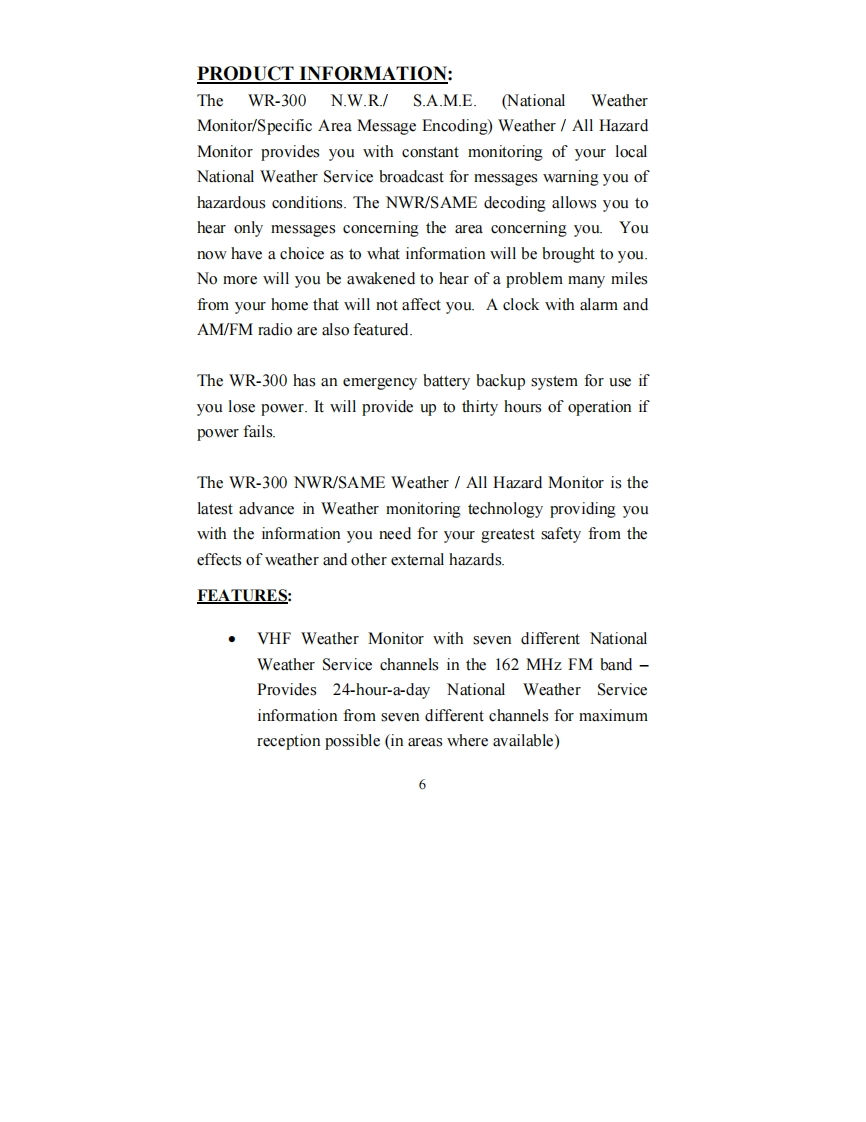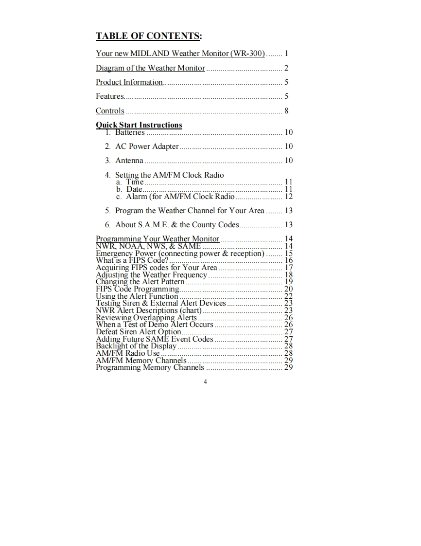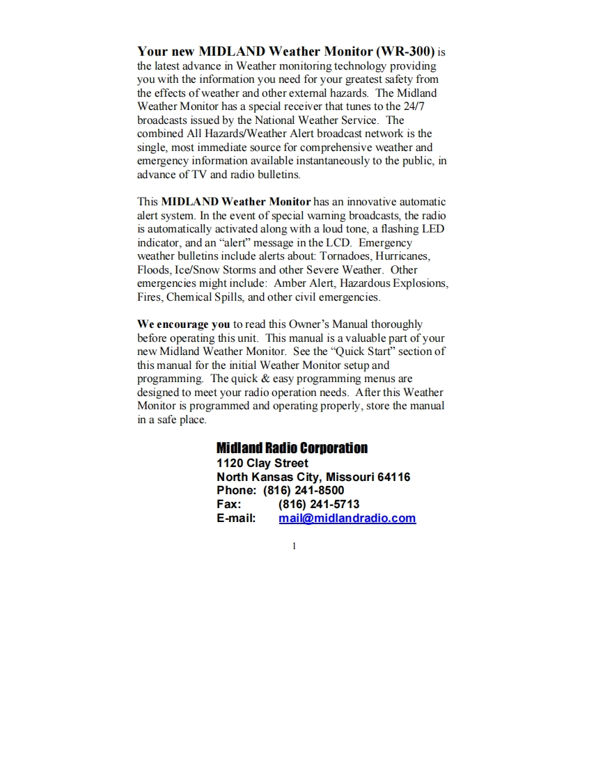 Midland_WR-300_(Owners_Manual操作说明书手册)找手册网8小时前发布关注私信0.40MB42页032Midland_WR-300_(Owners_Manual操作说明书手册)此内容为付费资源,请付费后查看¥19¥21黄金会员免费钻石会员免费立即购买您当前未登录!建议登陆后购买,可保存购买订单付费资源 第1页 / 共42页 第2页 / 共42页 第3页 / 共42页 第4页 / 共42页 第5页 / 共42页 第6页 / 共42页 第7页 / 共42页 第8页 / 共42页 第9页 / 共42页 第10页 / 共42页 试读已结束,还剩32页,您可下载完整版后进行离线阅读 THE ENDMidland 文本预览 ③IDLANDNOAA Weather MonitorModel WR-300"SAME Digital Weather/All-Hazard AlertWtih AM/FM Alarm Clock Radio"OWNER'S MANUALTORNRDOAM FMwww.midlandradio.com 查看更多 收起部分 喜欢就支持一下吧收藏