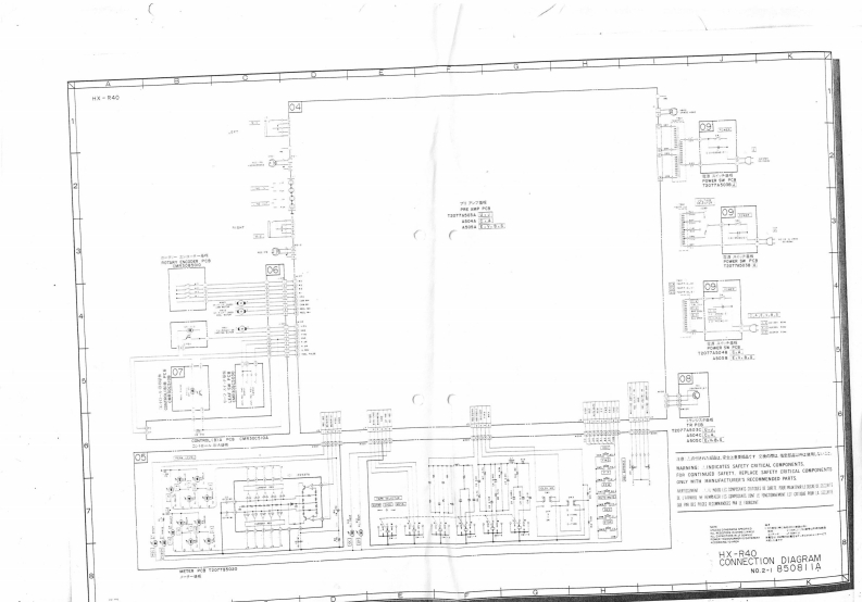 Radio en TelevisieserviceAKAI"KEES van de MORTEL"Boksheuvelstraat 145222 AN's-HERTOGENBOSCHTel.:(073)6218344MODEL HX-R40SCHEMATIC DIAGRAMAN▣PCB▣ARDSTABLE OF CONTENTS1.SCHEMATIC DIAGRAM OF ICs.......................................I2.SYSCON BLOCK DIAGRAM......................................3.PRE AMP BLOCK DIAGRAM.........................................4.CONNECTION DIAGRAM............................................65.METER PC BOARD,POWER SW PC BOARD,ROTARY ENCODERPC BOARD.CONTROL (B)A PC BOARD.CONTROL (B)B PC BOARDLEAFSW PCBOARD................................................76.PRE AMP SCHEMATIC DIAGRAM....................................87.PREAMP PC BOARD,TR PCBOARD..................................98.DOLBY ICSIGNAL LINE............................................10LB1649L001