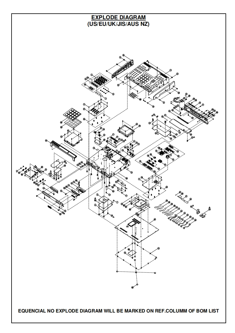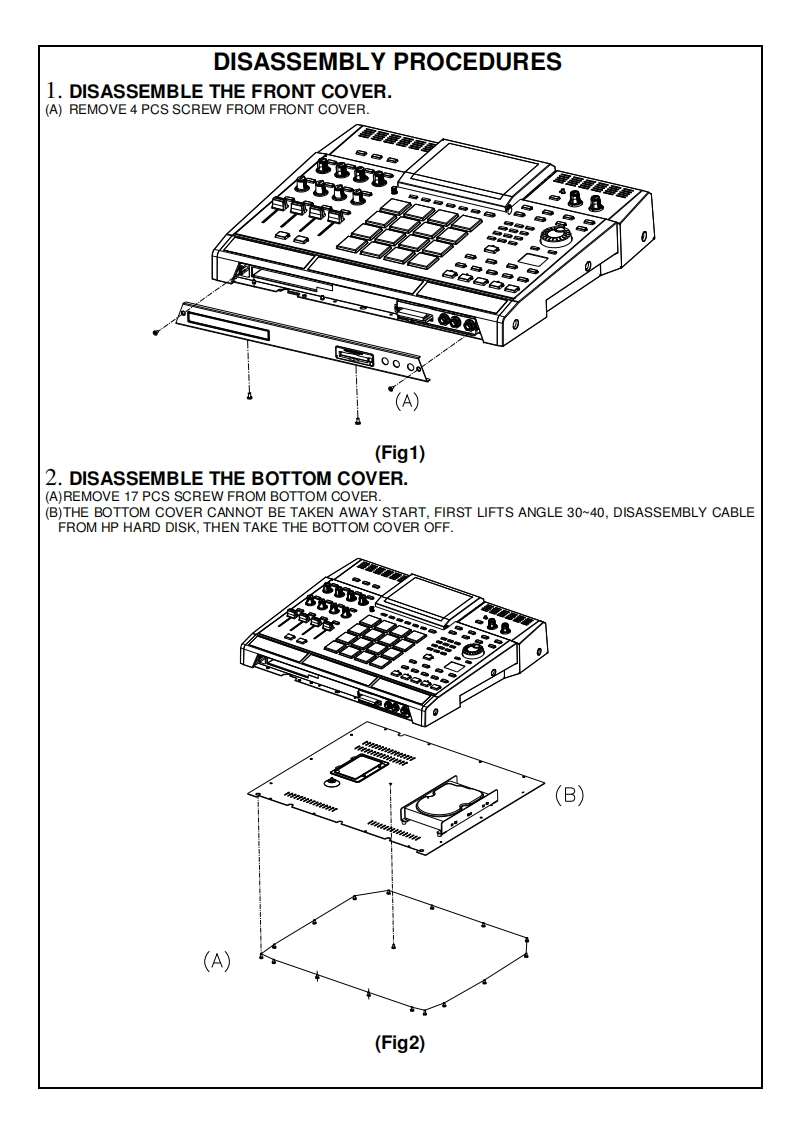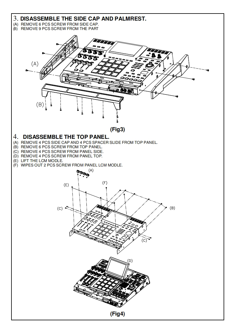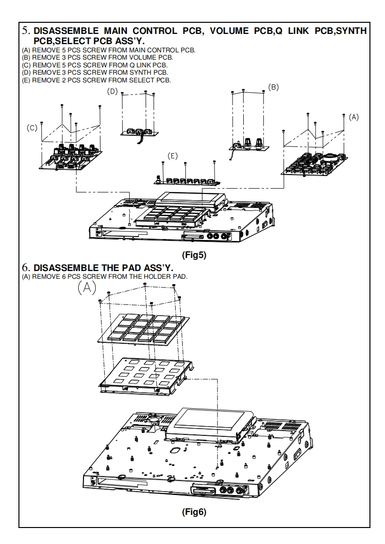SERVICE MANUALMODEL:MPC5000S6©SPECIFICATIONSGeneralInputs/OutputsDisplay/40x128 dot graphic LCD w/back lightRecord input (L and R)/MIC/1/4-inch Combo x 2 balancedMemory card slot/Compact Flash (The size of the compact flash-40dBu,input impedance 1lk ohms;RCA with PHONO preamp,cardMax.Input level /+10dButhat MPC5000 can handle is from32MB to 2GB)Digital input/RCA-pin x 1 S/PDIFDimentions (W x H x D)/18in x 16 1/16 x 33/8 (67/8 with screenStereo output (L and R)/1/4-inch phone x 2 balanced +11dBu.at max)output impedance Ik Ohms.Weight /18.2 IbsMax.output level/+22dBuPower regirement /50W8 individual outputs/1/4-inch phone x 4 balanced +11dBu,outputSound generatorimpedance 1k Ohms.Sampling rate/44.1kHzMax.output level /+22dBuMemory capacity /64MB standard ,expandable to 192MBPhones output/1/4-inch stereo phonex 1,200mW /100 ohmsRecording time 12m 48sec.(64MB,MONO),38m24sec.(192MBDigital output/RCA-pin x 1 S/PDIFADAT Optical x 1 (8 Channels)MONO)Memory expansion slot /1 x for optional EXM-E3MIDI inputs /5-pin DIN x 2Data format /16-bit linearMIDI outputs /5-pin DINx 4Polyphony /64USB/Slave connector x 1.USB MASS STORAGE CLASS supportDynamic filtering /1 State Variable Filter per voice (up to 8 pole,(Windows 2000/Me/XP or later version.or Mac OS 9.x/10.x or laterversion.depending on type)Filter type /LOW PASS.BAND PASS.HIGH PASS.BANDFootswitches /1/4-inch x 2BOOST.BAND STOP.ANALOG MODELING.VOCALStandard accessoriesFORMANTStandard accessories/Power cable.Operator's manualPreset sound memory /16MBOptionsNumber of programs 128EXM-E3/128MB expansion memory card (Upgrades unit to 192MBEffectstotal)CDM-25 CDR/DVD DriveEffects /4 stereo busses with 2 stereo effects per buss,and MasterData CompatibilityeffectMPC1000/SEO.WAV.PGMMaster effect/4 band EQ.CompressorMPC2000/2000XL/SEQ.WAV,SND,PGM (Most parameters ofSequencerPGM file can be loaded.)Maximum events 100.000 notesMPC4000/SEQ.WAV,PGM (DRUM program only.Only noteResolution /960 parts per 1/4-noteassign and tune are loaded.)Sequences /99MPC3000 SND (THRU Computer)Tracks per sequence /64Z4Z8/SEQ.WAV,PGM.(DRUMprogram only.Only note assignMIDI output channels /64 (16 channels x 4 outputs)and tune are loade.)Song mode /20 songs,250 steps per songS5000/6000/WAV only (THRU Computer)Drum pad /16(velocity and pressure sensitive)S1000/3000 No compatibilityDrum pad banks/4Syne mode/MIDI clock,MIDI Time CodeTransport Controls/MIDI Machine Control