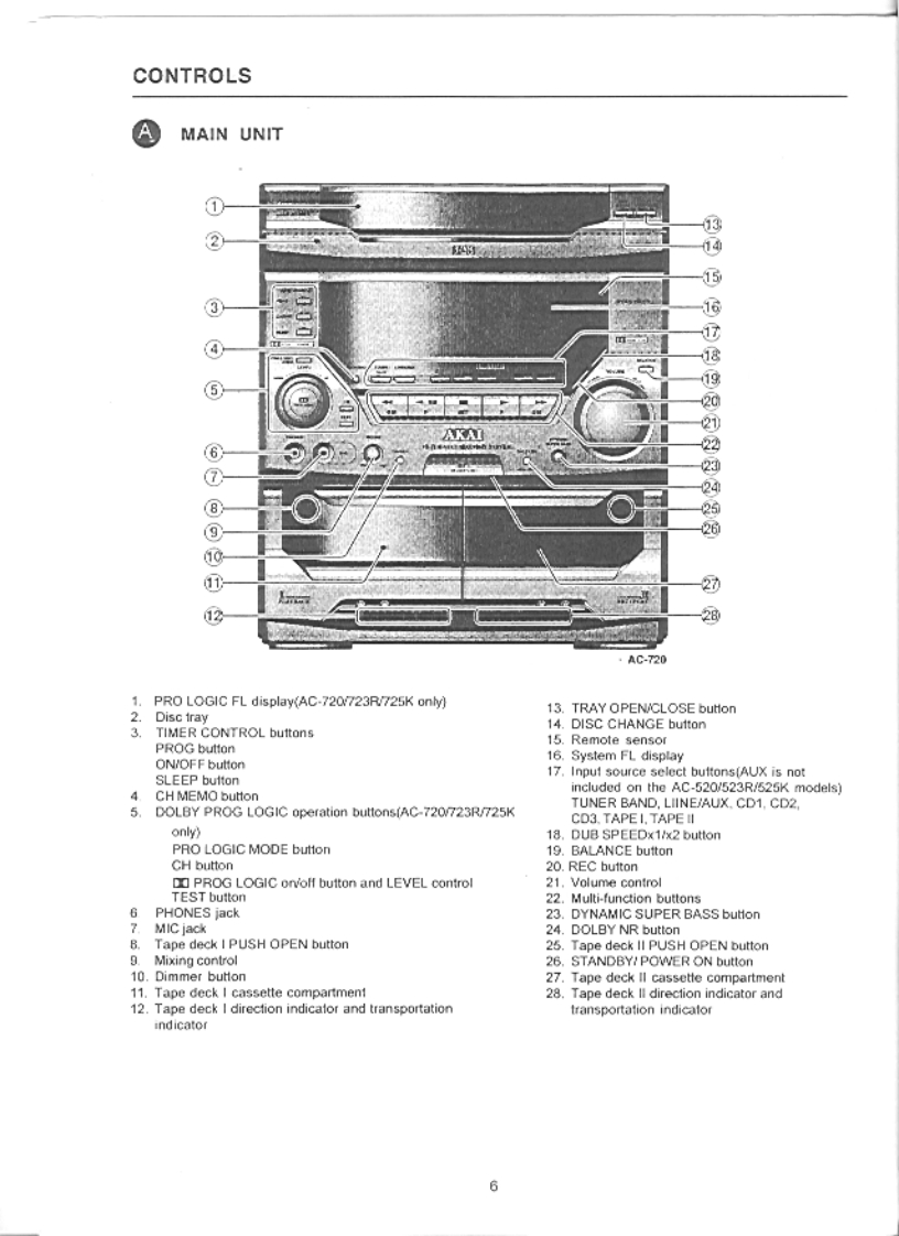 -7201723R72AC-5201523R1525KAKAI SERVICE mAnuALThe above illustrat on shows the AC 720 mosel.DOLBY B NRdiscDOLBY SURROUNDDIGITAL AUDIOPRO·LOG ICMINI STEREO COMPONENT SYSTEMMODEL AC-520/523R/525KMODELAC-7201723RJ725KMODEL SR-525/720