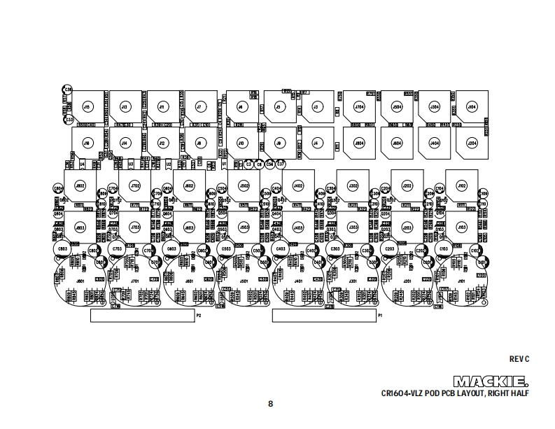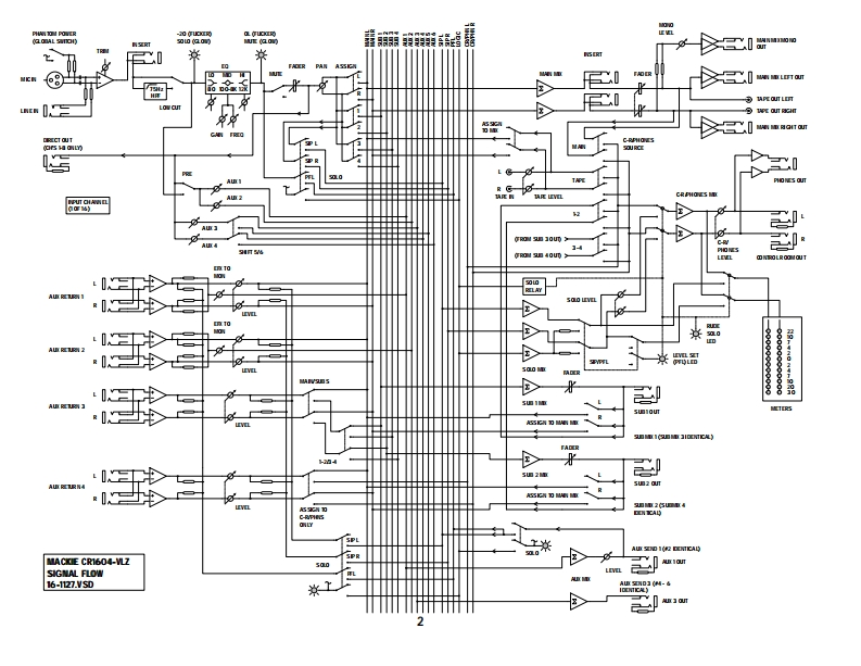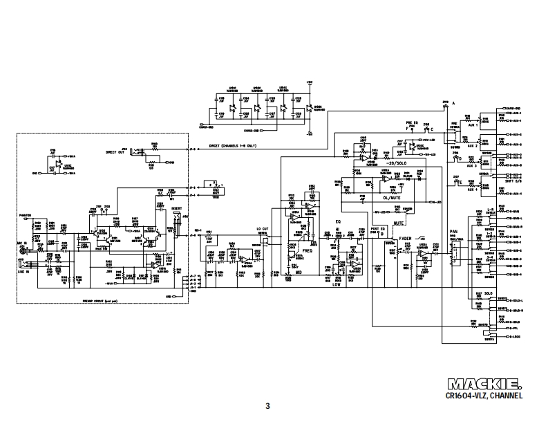 1604-VLZ"16 CHANNEL MIC/LINE MIXERSERVICE MANUALContentsPg.Quick PartsBlock DiagramChannel Schematic3Pod Section Schematics4-6Pod Section PCB Layout7-8Main Section Schematics9-14Main Section PCB Layout15Jumper Location and Pinout16Power Supply17MACKIE DESIGNS INC.,16220 WOOD-RED ROAD,WOODINVILLE,WA 98072,USA820-172-0005/99
