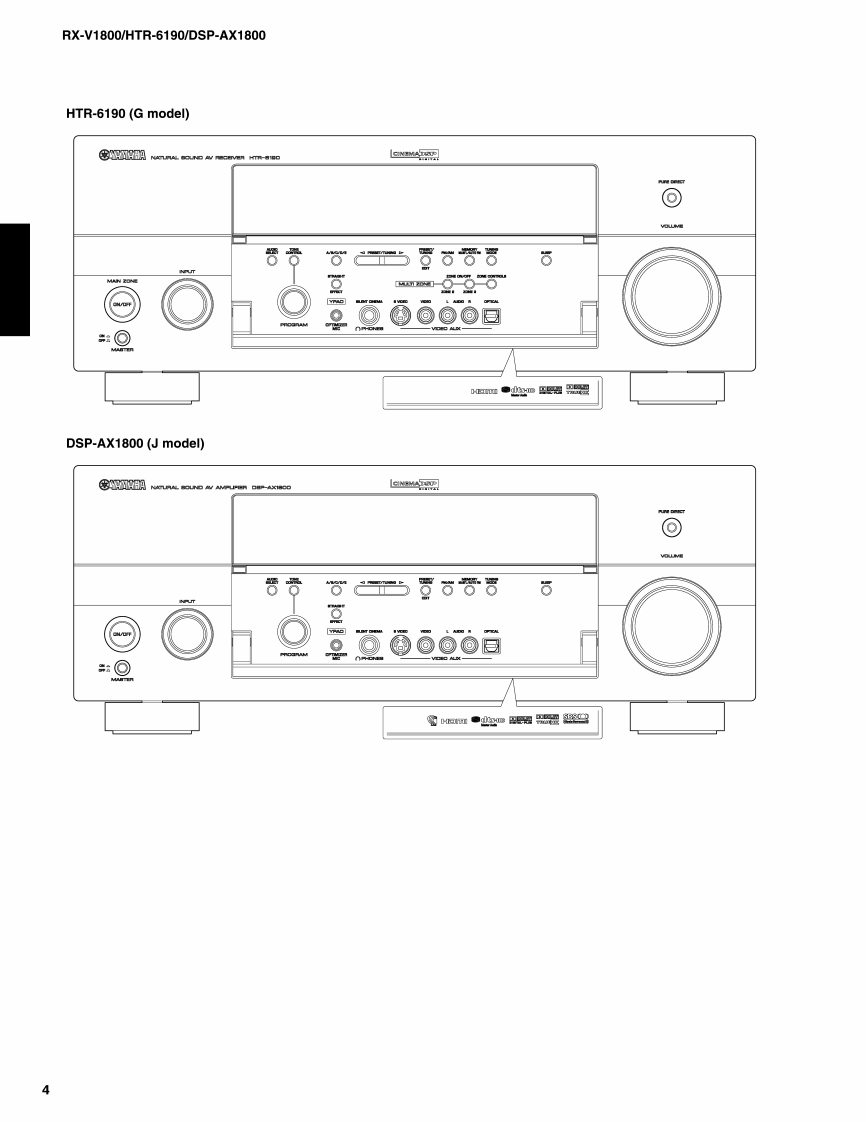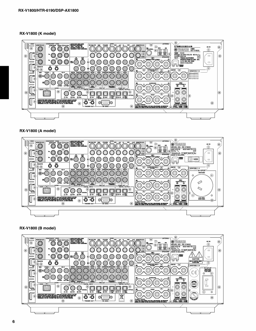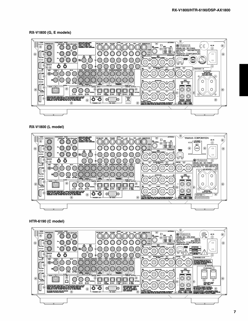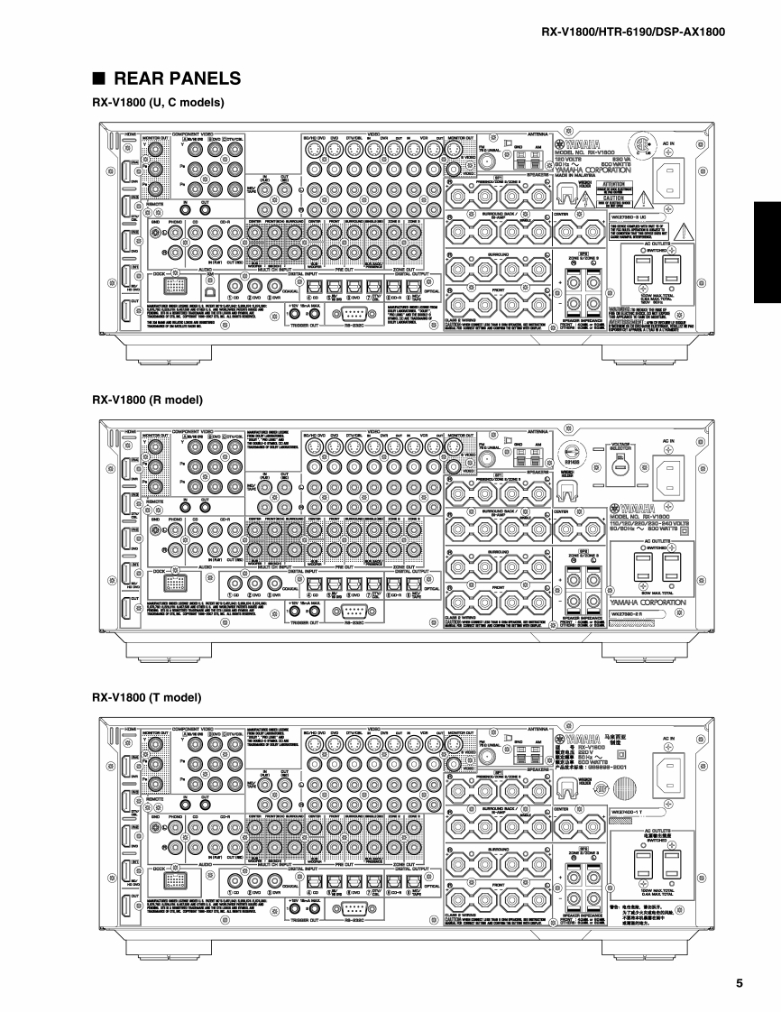 AV RECEIVER/AV AMPLIFIERRX-V1800/HTR-6190/DSP-AX1800SERVICE MANUAL-AX1800RX-V1200HTR1900IMPORTANT NOTICEThis manual has been provided for the use of au thorized YAMAHA Retailers and their service personnelIt has been assumed that basic service procedures inherent to the industry,and more specifically YAMAHA Products,are alreadyknown and understood by the users,and have therefore not been restated.WARNING:Failure to follow appropriate service and safety procedures when servicing this product may result in personalinjury,destruction of expensive components,and failure of the product to perform as specified.For these reasonswe advise all YAMAHA product owners that any service required should be performed by an authorizedYAMAHA Retailer or the appointed service representative.IMPORTANT:The presentation or sale of this manual toany individual or fim does not constitute authorization,certification orecognition of any applicable technical capabilities,or establish a principle-agent relationship of any form.The data provided is believed to be accurate and applicable to the unit(s)indicated on the cover.The research,engineering.andservice departments of YAMAHA are continually striving to improve YAMAHA products.Modifications are,therefore,inev itableand specifications are subject to change without notice or obligation to retrofit.Should any discrepancy appear to exist,pleasecontact the distributor's Service Division.WARNING:Static discharges can destroy expensive components.Discharge any static electricity your body may haveaccumulated by grounding yourself to the ground buss in the unit (heavy gauge black wires connect to this buss)IMPORTANT:Turn the unit OFF during disassembly and part replacement.Recheck all work before you apply power to the unit.■CONTENTSTO SERVICE PERSONNEL2AMP ADJUSTMENT/了>才部調整.71FRONT PANELS.…3-4DISPLAY DATA72REAR PANELS5-8C DATA73-84REMOTE CONTROL PANELS...9BLOCK DIAGRAMS...........85-87SPECIFICATIONS/参考仕樣10-13PRINTED CIRCUIT BOARDS.......88-115INTERNAL VIEW...14PIN CONNECTION DIAGRAMS...........116-118DISASSEMBLY PROCEDURES/分解手順...14-20SCHEMATIC DIAGRAMS ......119-137UPDATING FIRMWAREREPLACEMENT PARTS LIST139-174了7一么ヴ工了刃書老达办.20-33REMOTE CONTROL.....175-178SELF-DIAGNOSTIC FUNCTION/ADVANCED SETUP/ダ亻了分(自己診断機能).………..34-70下1>又卜七y卜了yブメ二1一卷設定寸石..179-181二)竹一上入了二1F儿体、工3マ一夕隔定)再生纸卷使用T儿'米寸。This Service Manual uses recycled paper米YAMAHA101063This manual is oopyighted by YAMAHA and may notbe copedorredistributed either in pintor electroncally without permission.YAMAHA CORPORATIONP.O.Box 1,Hamamatsu,Japan'07.08
