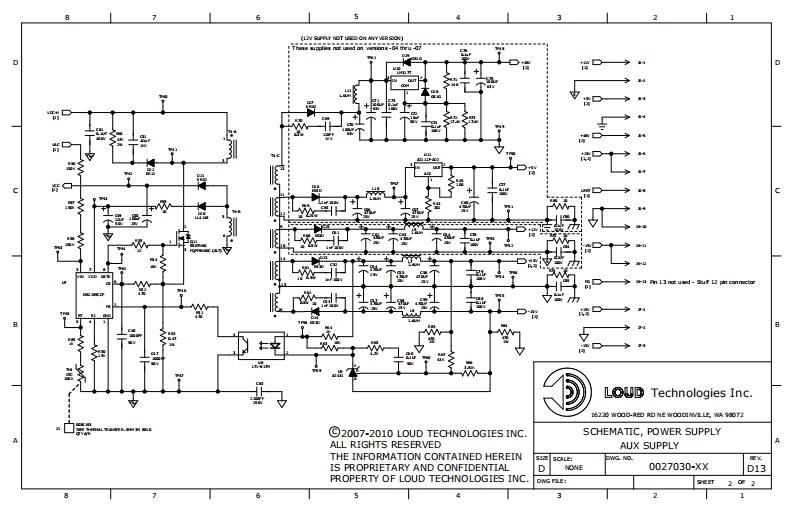 53“英HARDWAREDASMLYVERSOV TAOLE-00SHALL BOX L20V VE ROON0aD000020R0wLOUD Technologies Inc.04FS 120VVERSON06Sw1001/m1≤10/2007-2010 LOUD TECHNOLOGIES INC.SOHEMATIC,POWER SUPPLY-07s1901Wmw16200/ALL RIGHTS RESERVEDMAINSUPPLYTHE INFORMATION CONTAINED HEREINIS PROPRIETARY AND CONFIDENTIAL0027030-0PROPERTY OF LOUD TECHNOLOGIES INC5