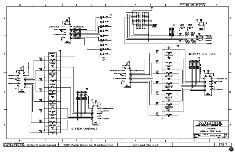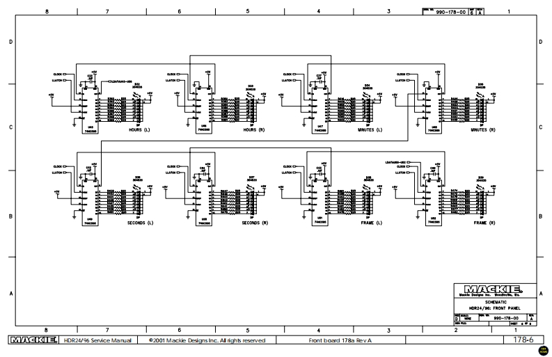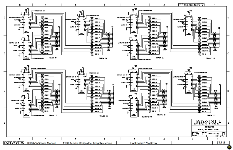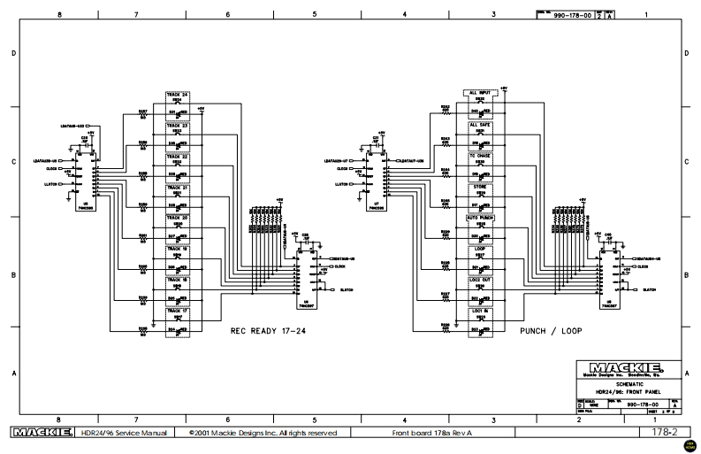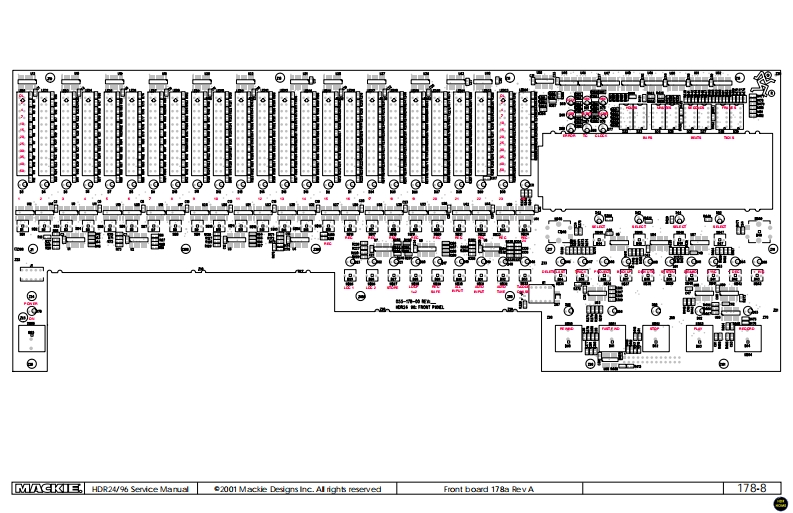 50-78-00N5D空BREC READY 1-8REC READY 9-16MAGKESCHEMATICHtm24/快FRONT PA延E0-4001721aYED☒EHDR24W96 Service Man✉62001 Mackie Designs ine.Al right reservedFront board 178a RevA178.1This is a colkection of all the 1 1x17 inch pages,useful ifyou want toprint all the large pages at once.⊙