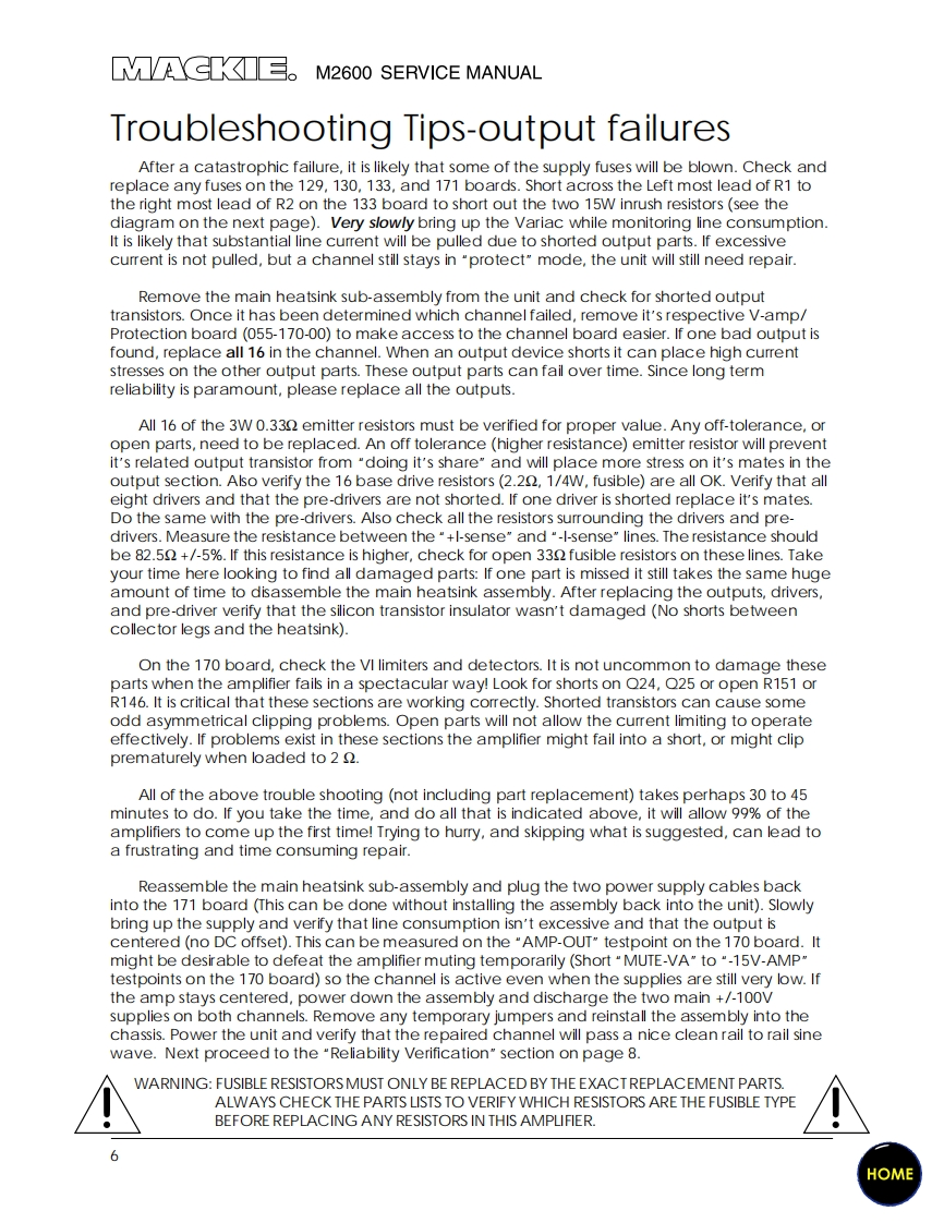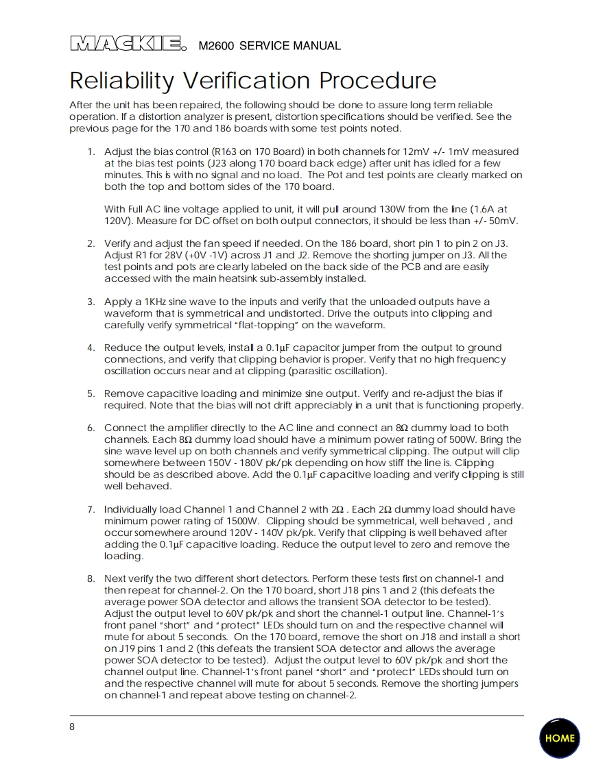 Mackie_M2600_Service_Manual维修服务手册含电器原理图找手册网4小时前发布关注私信1.80MB32页039Mackie_M2600_Service_Manual维修服务手册含电器原理图此内容为付费资源,请付费后查看¥19¥21黄金会员免费钻石会员免费立即购买您当前未登录!建议登陆后购买,可保存购买订单付费资源 第1页 / 共32页 第2页 / 共32页 第3页 / 共32页 第4页 / 共32页 第5页 / 共32页 第6页 / 共32页 第7页 / 共32页 第8页 / 共32页 第9页 / 共32页 第10页 / 共32页 试读已结束,还剩22页,您可下载完整版后进行离线阅读 THE ENDMackie 文本预览 Go To BulletinsMACKEΛ2600FR Series Power Amplifier0©SERVICE MANUAL©1998,©1999 ACKIE DESIGNS,INC.820-180-00Page 3 is interactiveHOME 查看更多 收起部分 喜欢就支持一下吧收藏