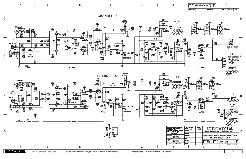 54990-205-04E中Note that an important change has oceuredin thi revision.See poge 11.●4DCHANNEL 1⊙0000ò强型NP LVL SETBeCHANNEL 2L888000000熟B银卡咒最口需-CoACn00Mn51金2机90-35-040M5PPM Service Manud2002 Mackie Designs ine.All rights reserved408M/808M Mioer Boord 205 Rev F