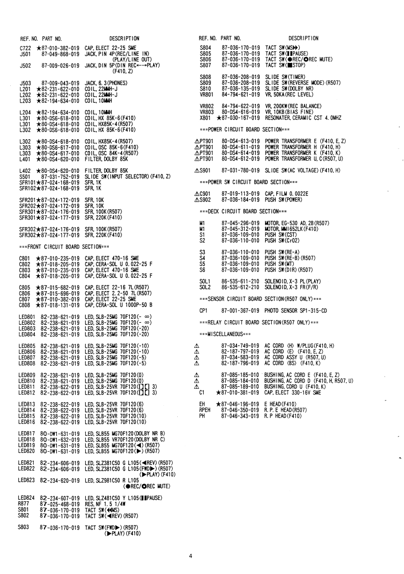 S/M Code No.91-026 DATE OF ISSUE 6/1991-TAIWAAD-R507AD-F410SERVIC旺MANUALSTEREO CASSETTE DECKU(R507)BASIC TAPE MECHANISM:a-14TYPE.H,E,K,Z(F410)AIWA Co.,Ltd.Tokyo J apanPrinted in Japan