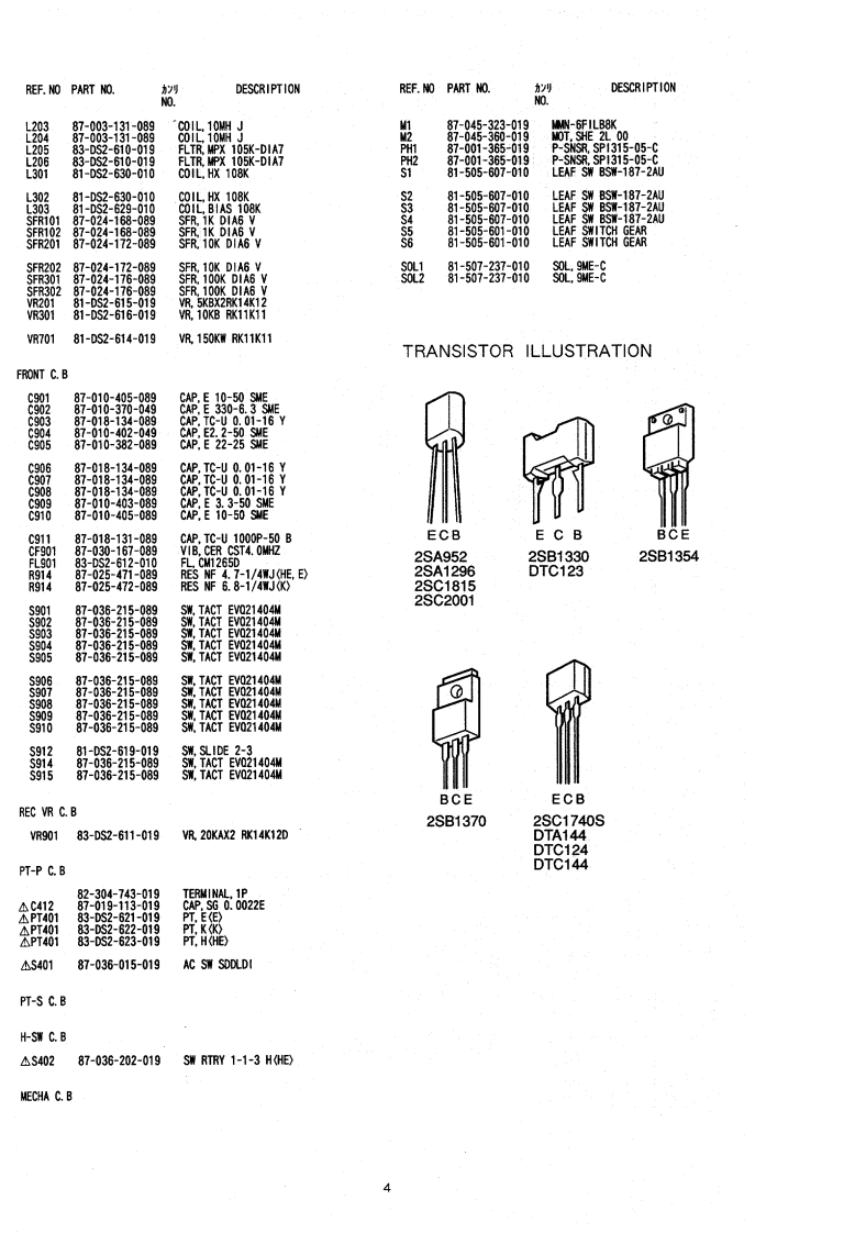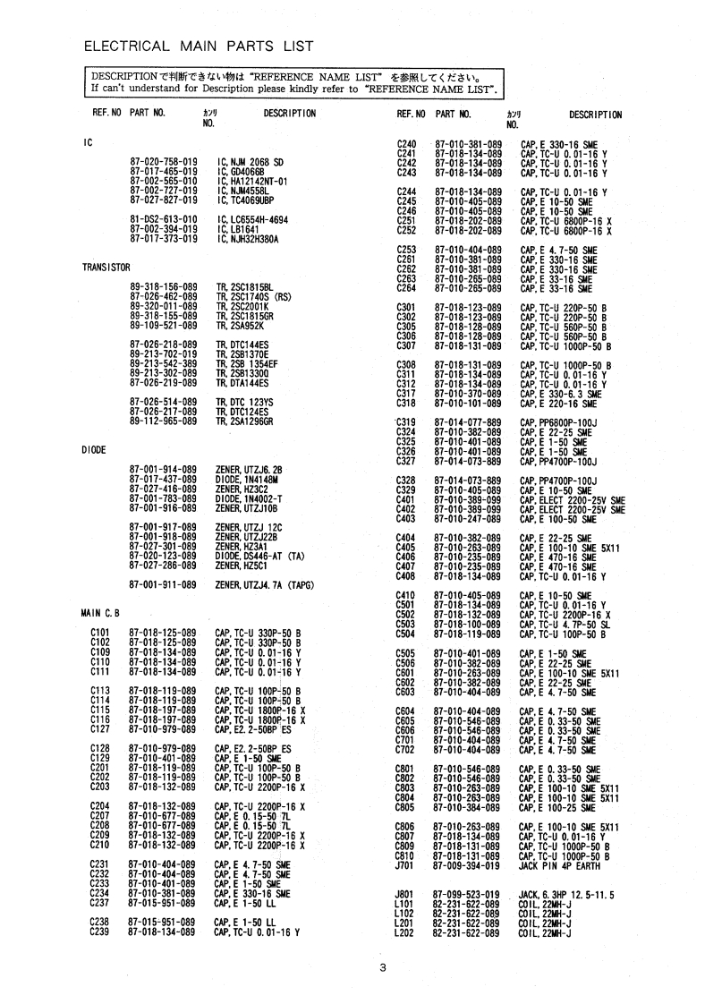 gMAD-F8500000TV A NVNSTEREO CASSETTE DECKBASIC TAPE MECHANISM:a-12 R4N.TYPE.HE,E,K改定版[REVISION PUBLISHING]SPECIFICATIONSTypeStereo cassette deckInputsREC/LINE IN:100mV (MAX inputTrack format4 tracks.2 channelssensitivity.47kR)Power supplyAD-F850 EOutputsPLAY/LINE CUT 530mV (0dB)AC230V,50tSuitable load impedance overAD-F850 K47kQAC230-240W,50HzPHONES 1.1mV (OdB)AD-F850 HESuitable load impedance 32AC120/220/240WDimensions4300w0×140(0x318(D)mmswitchable.50/60Hz(17×5s/8×12s/8 inches)Power consumptionAD-F850 HE18wWeight4.5kpAD-F850 E,K 25W9.96sFrequency responseMetal tape 15-20,000HzCr02t3pe:15-19.000h.Design and specifications are subject to change withoutNormal tape 15-18,000HzSignal-to nolse rationotice.80dB (METAL tape DOLBY C NR0Na的ow85kh).Dolby noise reduction and HX Pro headroom extensionH0IAHaSWow and flutter0.035%(WMS)manufactured under license from Dolby Laboratories1.0%(DN45500)Licensing Corporation.HX Pro originated by BangTape speed4.75cm/sec.(17/8ps)Olufsen.Recording systemAC bias (frequency 105kHz)"DOLBY".the double-D symbol and "HX PRO"areErase systemAC erasetrademarks of Dolby Laboratories Licensing Corporation.MotorDC servomotor×1DC motor×1Laboratories Licensing Corporation.HeadsPlayback head×1(P℃-O0 C coilsuper DX head)Recording head x 1 (PC-OOC coilsuper DX head)Erase head x 1.(Double-gapsendust head)S/M Code No.09-944-054-20T