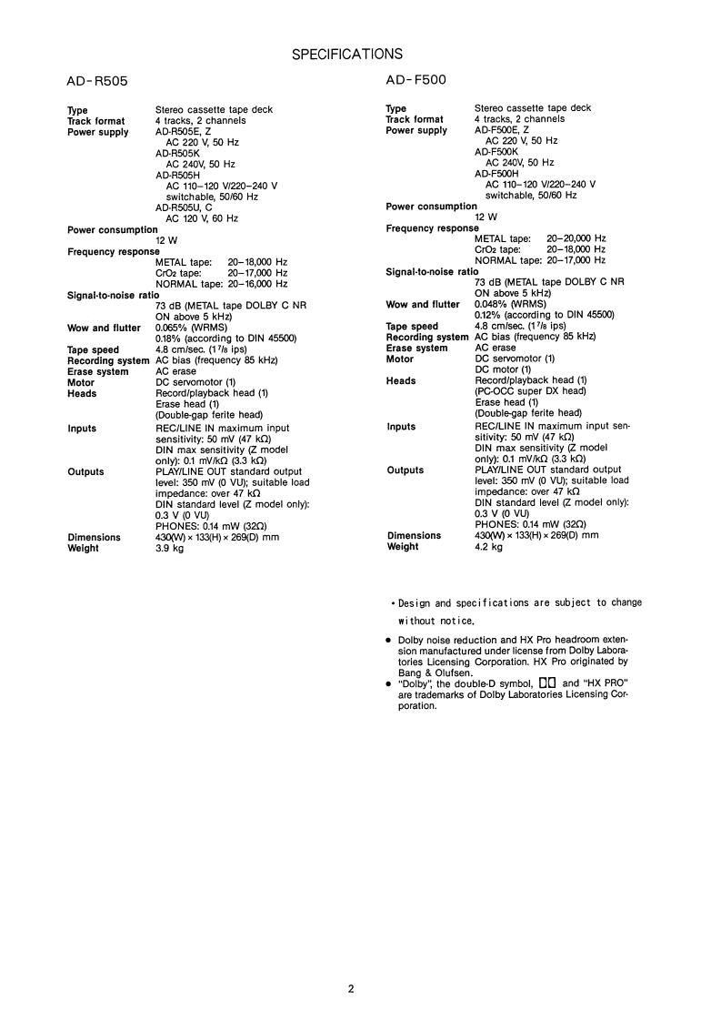 S/M Code No.90-099 DATE OF ISSUE 12/1990-TAWAAD-F500AD-R505SERVIC旺MANUALSTEREO CASSETTE DECKBASIC TAPE MECHANISM:a-14·TYPE.H,E,K,Z(F500)H.U,C.E,K,Z (R505)AIWA Co..Ltd.Tokyo JapanPrinted in Japan