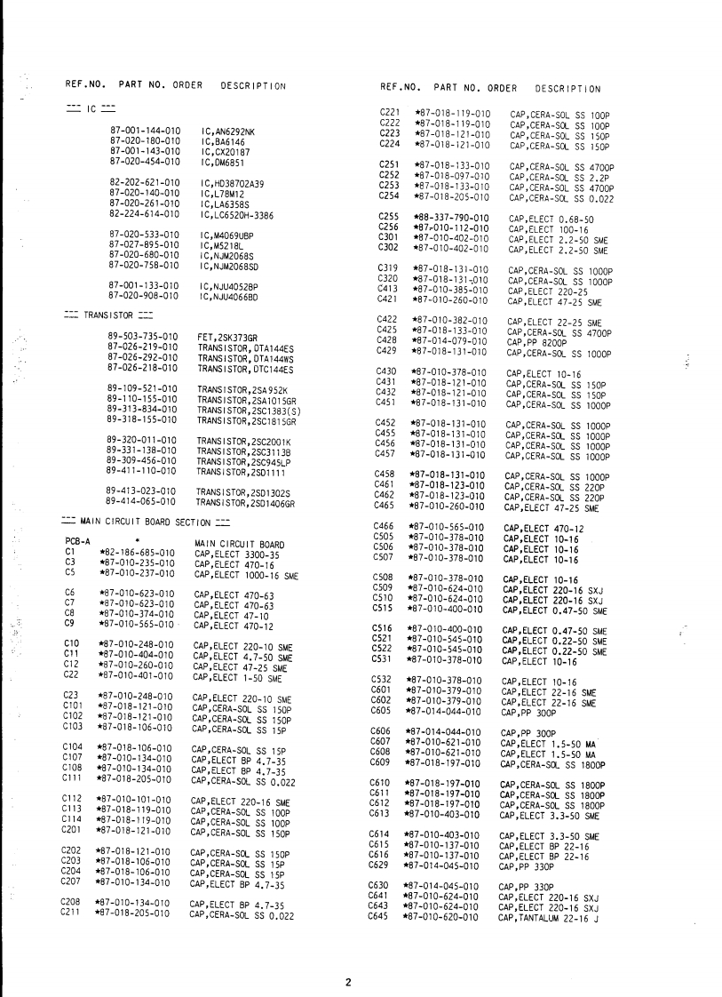 AIWAS/M Code No.87-057DATE OF ISSUE10/1987-1SERVICE MANUALMODEL No.AD-WX808■STEREO CASSETTE DECKTYPE.HB,UB,EB,KB,ZB■BASIC MECHANISM:X-3For Service Manuals ContactMAURITRON TECHNICAL SERVICES8 Cherry Tree Ad.ChinnorOxon OX9 4QYTk01844-351694faxe01844-352554Email:-enquines@mauritronoo.ukSPECIFICATIONSTypeStereo cassette tape deckWow and flutterDeck□Track format4 tracks,2 channels0.1%(According to DIN 45500)Power supplyAD-WX808E,Z0.055%WRMS)AC220V,5060HzDeck回AD-WX808K0.1%(According to DIN 45500)AC 240 V,50/60 Hz0.055%(WRMS)AD-WX808UTape speed4.8 cm/sec.(1-7/8 ips),9.5 cm/secAC 120 V.60 Hz(Double speed)AD-WX808HRecording system AC bias (frequency 100 kHz)AC120VI220V/240VErase systemAC eraseswitchable,50/60 HzMotorDC Servomotor×2PowerHeadsRecord/playback head x 1consumptionAD-WX808E.K.Z(AMORPHOUS HEAD)36WP1 ayback head×1AD-WX808H,U(AMORPHOUS HEAD)30WErase head×1FrequencyLINE IN maximum inputresponseMETAL tape:20-18.000HzInputsCrO:tape:20-17.000Hzsensitivity:50 mV (over 50 k)NORMAL tape:OutputsLINE OUT standard output level:20-16.000HzSignal-to-noise400 mV (0 VU):suitable loadratio92 dB (CrO,tape dbx NRimpedance:over 47 kn.ON)Dimensions430W0×126.5(H×318.5(D)mm73 dBWeight5.5kg(METAL tape DOLBY C NR ON)Design andspecifications are subject to change withoutnotice.Noise reduction system manufactured under license fromDoiby Laboratories Licensing Corporation.HX professional originated by BANG&OLUFSEN..Doiby and the a symbol are trademarks of Dolby Labo-ratories Licensing Corporation.AlWA CO.,Ltd.Tokyo JapanPrinted in Japan