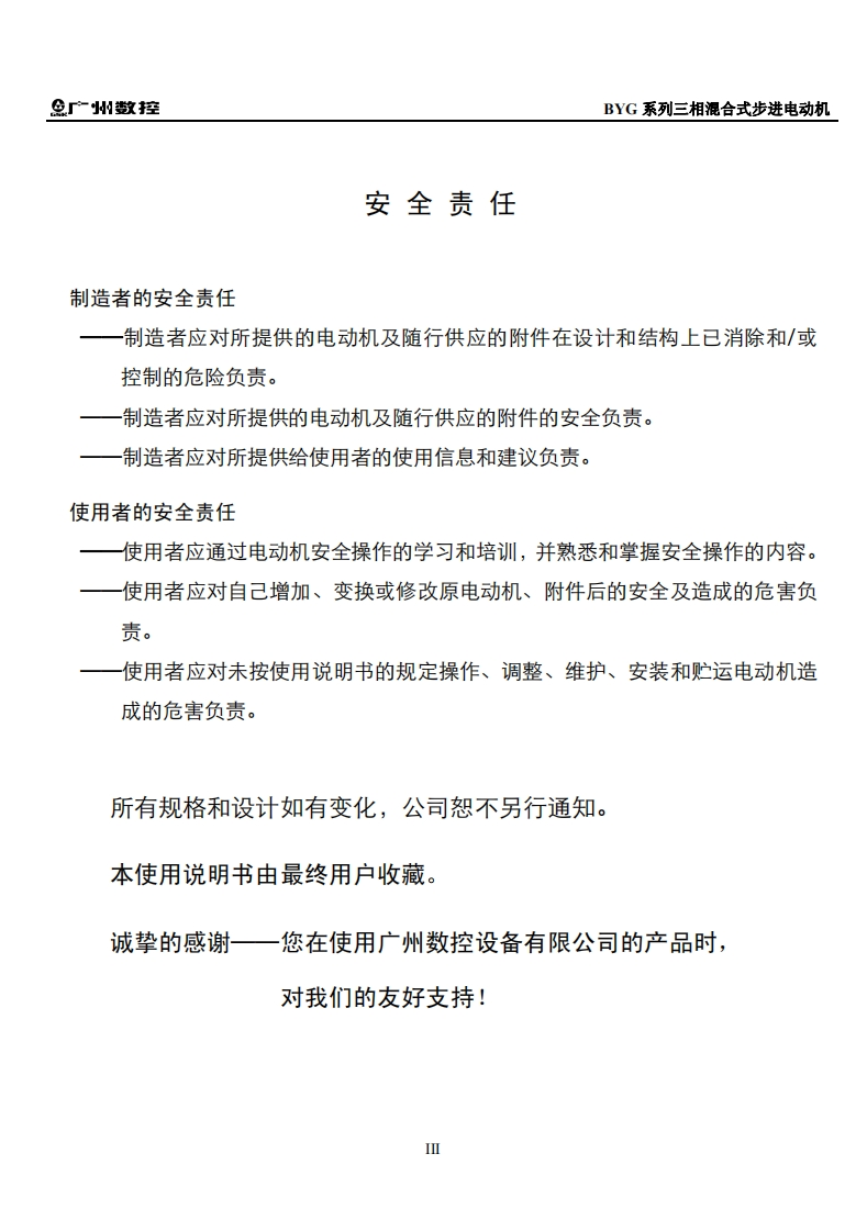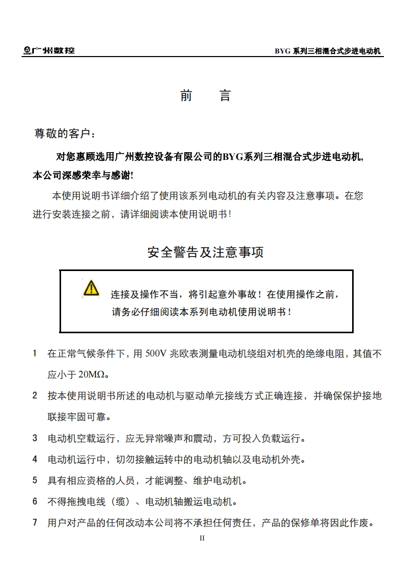BYG系列三相混合式步进电动机使用说明书(2011年7月第1版)-2011-07-05定稿找手册网4小时前发布关注私信0.81MB13页024BYG系列三相混合式步进电动机使用说明书(2011年7月第1版)-2011-07-05定稿此内容为付费资源,请付费后查看¥29¥31黄金会员免费钻石会员免费立即购买您当前未登录!建议登陆后购买,可保存购买订单付费资源 第1页 / 共13页 第2页 / 共13页 第3页 / 共13页 第4页 / 共13页 第5页 / 共13页 第6页 / 共13页 第7页 / 共13页 第8页 / 共13页 第9页 / 共13页 第10页 / 共13页 试读已结束,还剩3页,您可下载完整版后进行离线阅读 THE END广州数控 文本预览 米在本使用说明书中,我们将尽力叙述各种与三相混合式步进电动机(简称电动机)相关的事项。限于篇幅限制及产品具体使用等原因,不可能对所有不必做和/或不能做的操作进行详细的叙述。因此,本使用说明书中没有特别指明的事项均视为“不可能”或“不允许”进行的操作。米本使用说明书的版权,归广州数控设备有限公司所有,任何单位与个人进行出版或复印均属于非法行为,广州数控设备有限公司将保留追究其法律责任的权利。I 查看更多 收起部分 喜欢就支持一下吧收藏