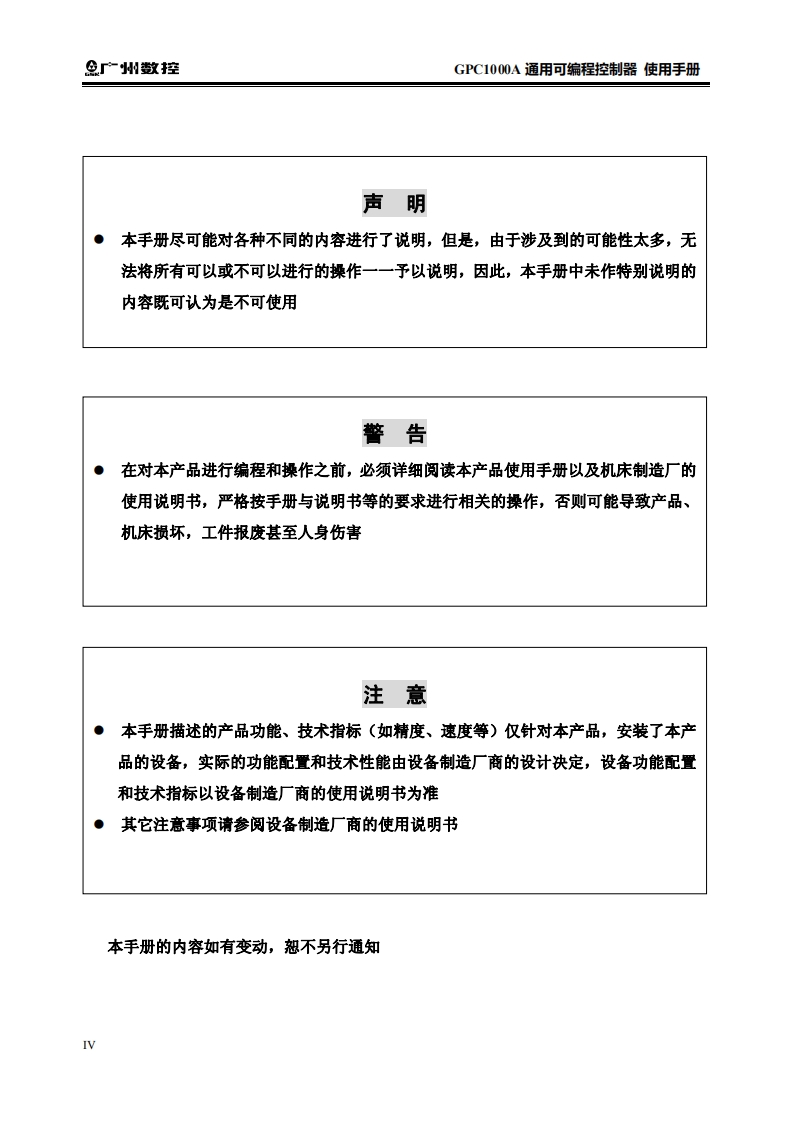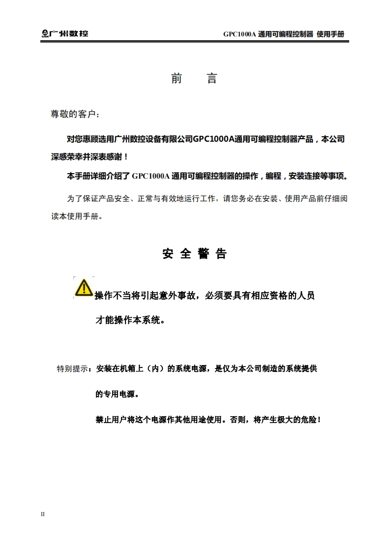 GPC1000A通用可编程使用手册2016年6月第1版0701定找手册网4小时前发布关注私信4.54MB176页028GPC1000A通用可编程使用手册2016年6月第1版0701定此内容为付费资源,请付费后查看¥29¥31黄金会员免费钻石会员免费立即购买您当前未登录!建议登陆后购买,可保存购买订单付费资源 第1页 / 共176页 第2页 / 共176页 第3页 / 共176页 第4页 / 共176页 第5页 / 共176页 第6页 / 共176页 第7页 / 共176页 第8页 / 共176页 第9页 / 共176页 第10页 / 共176页 试读已结束,还剩166页,您可下载完整版后进行离线阅读 THE END广州数控 文本预览 下在本使用手册中,我们将尽力叙述各种与GPC1000A通用可编程控制器操作相关的事项。限于篇幅限制及产品具体使用等原因,不可能对该系列数控系统中所有不必做和/或不能做的操作进行详细的叙述。因此,本使用手册中没有特别指明的事项均视为“不可能”或“不允许”进行的操作。米本使用手册的版权,归广州数控设备有限公司所有,任何单位与个人进行出版或复印均属于非法行为,广州数控设备有限公司将保留追究其法律责任的权利。 查看更多 收起部分 喜欢就支持一下吧收藏