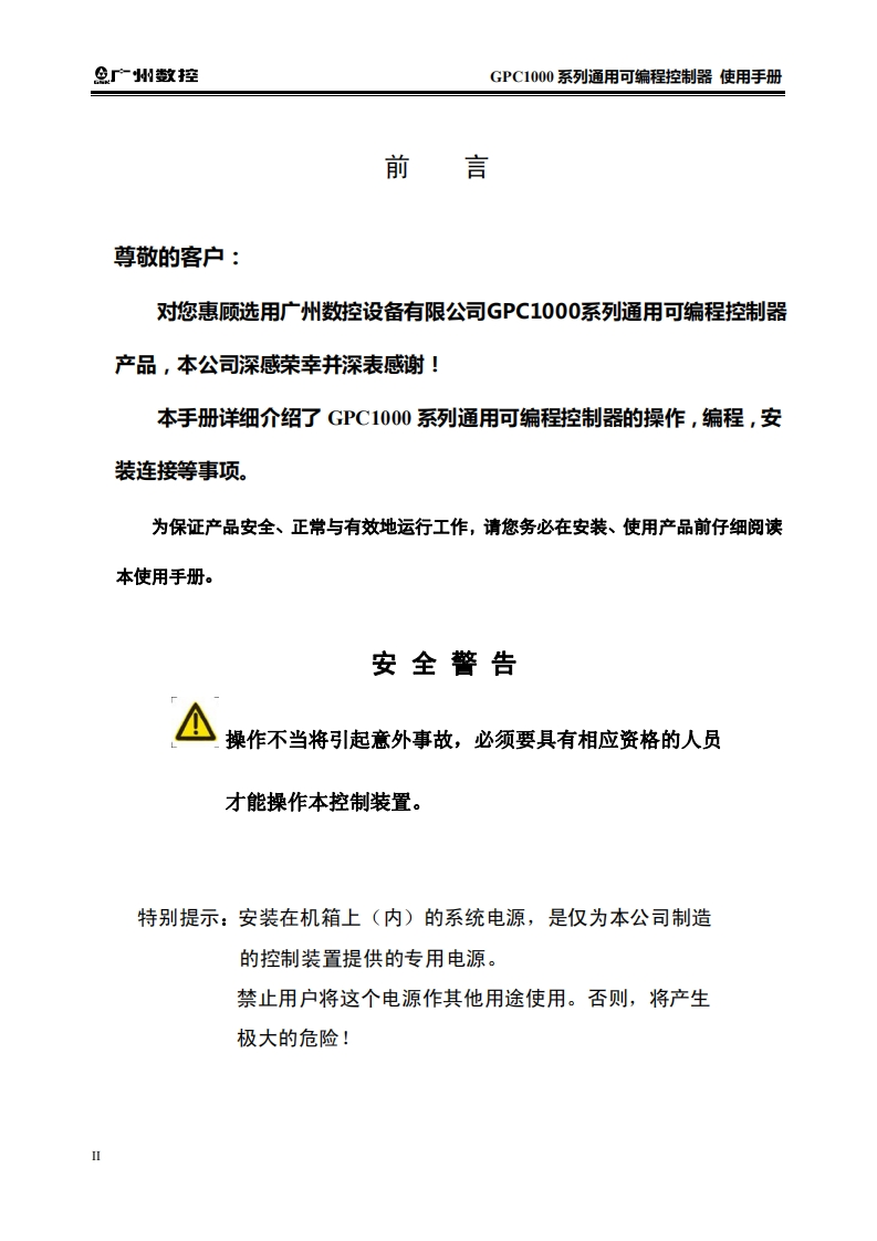 GPC1000系列可编程使用手册2016年2月第1版3-7定找手册网6小时前发布关注私信3.12MB72页033GPC1000系列可编程使用手册2016年2月第1版3-7定此内容为付费资源,请付费后查看¥29¥31黄金会员免费钻石会员免费立即购买您当前未登录!建议登陆后购买,可保存购买订单付费资源 第1页 / 共72页 第2页 / 共72页 第3页 / 共72页 第4页 / 共72页 第5页 / 共72页 第6页 / 共72页 第7页 / 共72页 第8页 / 共72页 第9页 / 共72页 第10页 / 共72页 试读已结束,还剩62页,您可下载完整版后进行离线阅读 THE END广州数控 文本预览 h在本使用手册中,我们将尽力叙述与广州数控设备有限公司GPC1000系列通用可编程控制器操作使用相关的事项。限于篇幅限制及产品具体使用等原因,不可能对此系列控制装置中所有不必做和/或不能做的操作进行详细的叙述。因此,本使用手册中没有特别指明的事项均视为“不可能”或“不允许”进行的操作。半本使用手册的版权,归广州数控设备有限公司所有,任何单位与个人进行出版武复印均属于非法行为,广州数控设备有限公司将保留追究其法律责任的权利。 查看更多 收起部分 喜欢就支持一下吧收藏
