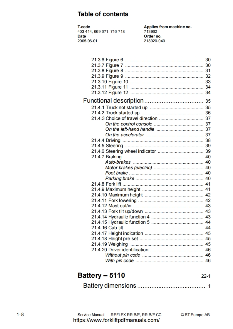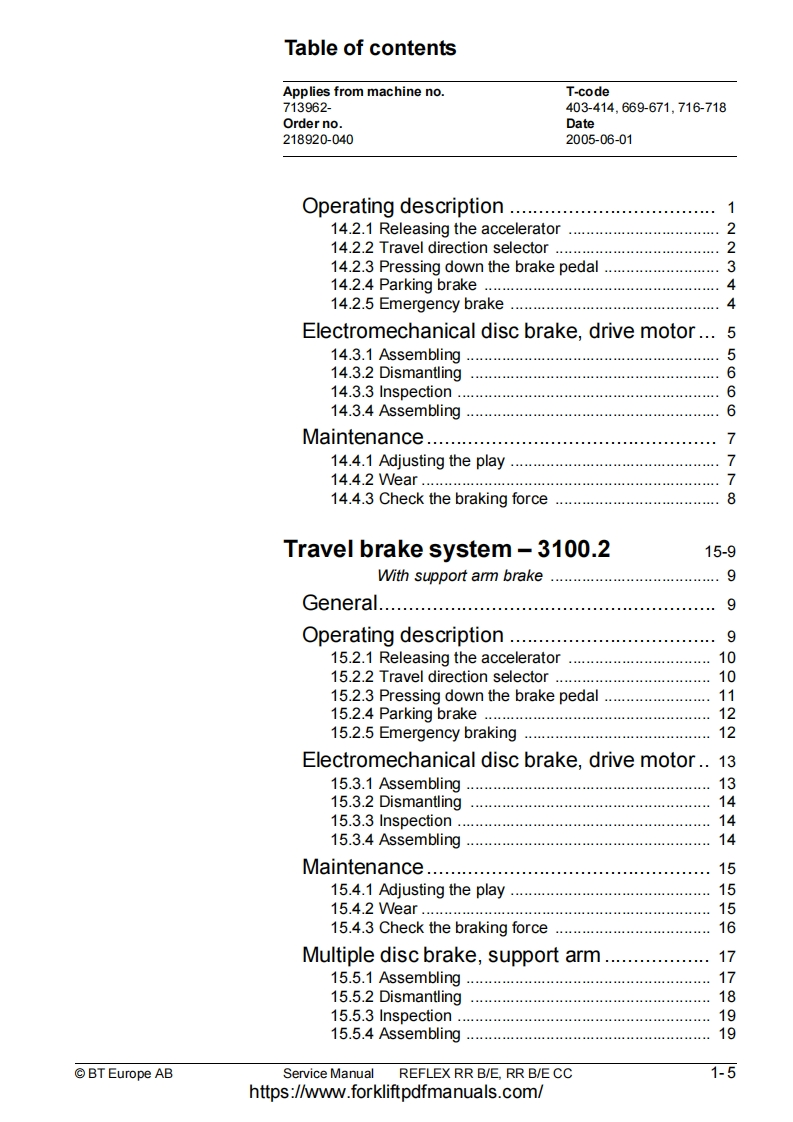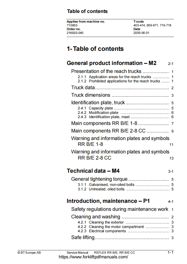 BT-ECC-RRB-Forklift-Trucks-Service-Manual维修维护手册-PDF找手册网3小时前发布关注私信17.14MB514页028BT-ECC-RRB-Forklift-Trucks-Service-Manual维修维护手册-PDF此内容为付费资源,请付费后查看¥29¥31黄金会员免费钻石会员免费立即购买您当前未登录!建议登陆后购买,可保存购买订单付费资源 第1页 / 共514页 第2页 / 共514页 第3页 / 共514页 第4页 / 共514页 第5页 / 共514页 第6页 / 共514页 第7页 / 共514页 第8页 / 共514页 第9页 / 共514页 第10页 / 共514页 试读已结束,还剩504页,您可下载完整版后进行离线阅读 THE ENDJCB/鼎力 文本预览 BTService ManualenREFLEX RR B,E RR B,E CCValid from serial number:713962-Order number:218920-040Issued:2005-09-09 ITS©BT Europe ABhttps://www.forkliftpdfmanuals.com/ 查看更多 收起部分 喜欢就支持一下吧收藏
