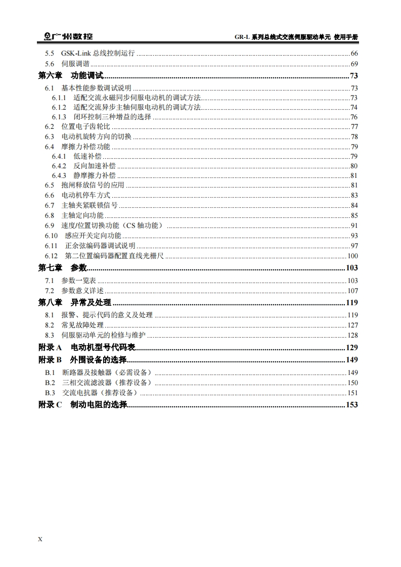 GR-L系列总线式交流伺服驱动单元使用手册2024年1月第5版0219定找手册网4小时前发布关注私信5.31MB166页041GR-L系列总线式交流伺服驱动单元使用手册2024年1月第5版0219定此内容为付费资源,请付费后查看¥29¥31黄金会员免费钻石会员免费立即购买您当前未登录!建议登陆后购买,可保存购买订单付费资源 第1页 / 共166页 第2页 / 共166页 第3页 / 共166页 第4页 / 共166页 第5页 / 共166页 第6页 / 共166页 第7页 / 共166页 第8页 / 共166页 第9页 / 共166页 第10页 / 共166页 试读已结束,还剩156页,您可下载完整版后进行离线阅读 THE END广州数控 文本预览 半在本使用手册中,我们将尽力叙述各种与GL系列总线式交流同服驱动单元产品操作相关的事项。限于篇幅限制及产品具体使用等原因,不可能对产品中所有不必做或不能做的操作进行详细的叙述。因此,本使用手册中没有特别指明的事项均视为“不可能”或“不允许”进行的操作。半本使用手册的版权,归广州数控设备有限公司所有,任何单位与个人进行出版或复印均属于非法行为,广州数控设备有限公司将保留追究其法律责任的权利。 查看更多 收起部分 喜欢就支持一下吧收藏