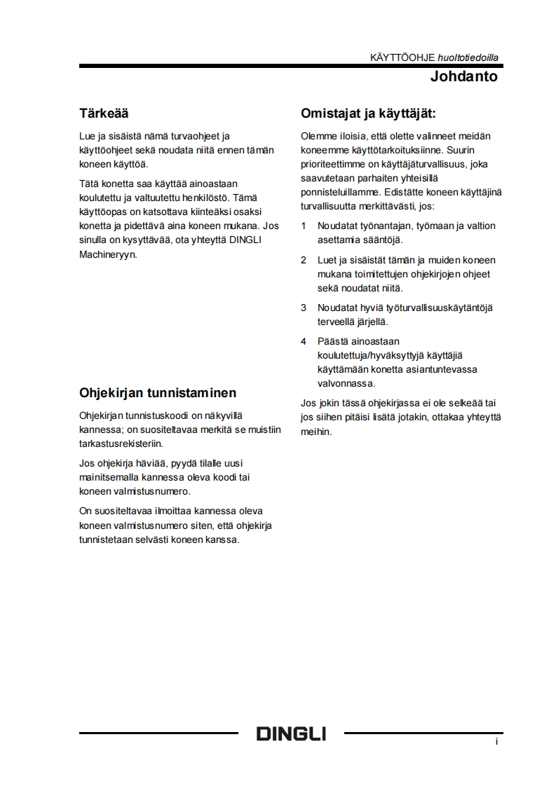 BT24262830RTSRTBRToperatormanual-Finnish(SM031910111FI_Rev1.0)维修维护说明书手册找手册网3小时前发布关注私信10.99MB136页045BT24262830RTSRTBRToperatormanual-Finnish(SM031910111FI_Rev1.0)维修维护说明书手册此内容为付费资源,请付费后查看¥29¥31黄金会员免费钻石会员免费立即购买您当前未登录!建议登陆后购买,可保存购买订单付费资源 第1页 / 共136页 第2页 / 共136页 第3页 / 共136页 第4页 / 共136页 第5页 / 共136页 第6页 / 共136页 第7页 / 共136页 第8页 / 共136页 第9页 / 共136页 第10页 / 共136页 试读已结束,还剩126页,您可下载完整版后进行离线阅读 THE ENDJCB/鼎力 文本预览 DINGLIExceed.New HeightKAYTTOOHJEhuoltotiedoillaBT30RTBT28RTBT26RTBT24RTBT30SRTBT28SRTBT26SRTBT28BRTBT26BRTBT24BRTOsanumero:SM031910111FIAlkuperaisten ohjeidenVersion numero:Rev1.0kaannδsJoulukuu 2022 painatusDINGLI 查看更多 收起部分 喜欢就支持一下吧收藏