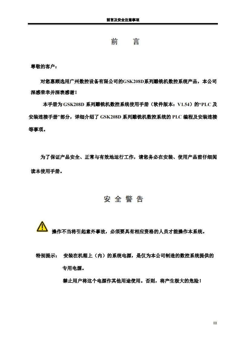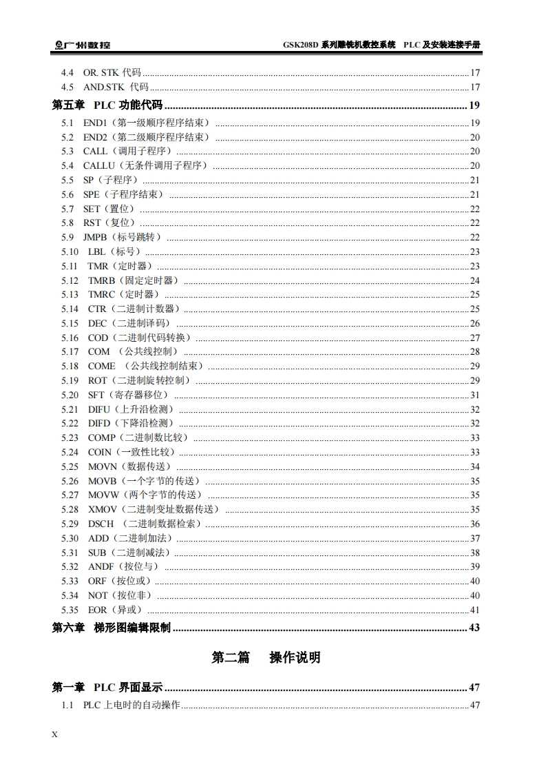 GSK208D系列雕铣机数控系统PLC及安装连接手册2024年2月第4版0311定找手册网4小时前发布关注私信4.46MB242页027GSK208D系列雕铣机数控系统PLC及安装连接手册2024年2月第4版0311定此内容为付费资源,请付费后查看¥29¥31黄金会员免费钻石会员免费立即购买您当前未登录!建议登陆后购买,可保存购买订单付费资源 第1页 / 共242页 第2页 / 共242页 第3页 / 共242页 第4页 / 共242页 第5页 / 共242页 第6页 / 共242页 第7页 / 共242页 第8页 / 共242页 第9页 / 共242页 第10页 / 共242页 试读已结束,还剩232页,您可下载完整版后进行离线阅读 THE END广州数控 文本预览 在本使用手册中,我们将尽力叙述各种与GSK208D系列雕铣机数控系统操作相关的事项。限于篇幅限制及产品具体使用等原因,不可能对该系列数控系统中所有不必做或不能做的操作进行详细的叙述。因此,本使用手册中没有特别指明的事项均视为“不可能”或“不允许”进行的操作。半本使用手册的版权,归广州数控设备有限公司所有,任何单位与个人进行出版或复印均属于非法行为,广州数控设备有限公司将保留追究其法律责任的权利。 查看更多 收起部分 喜欢就支持一下吧收藏
