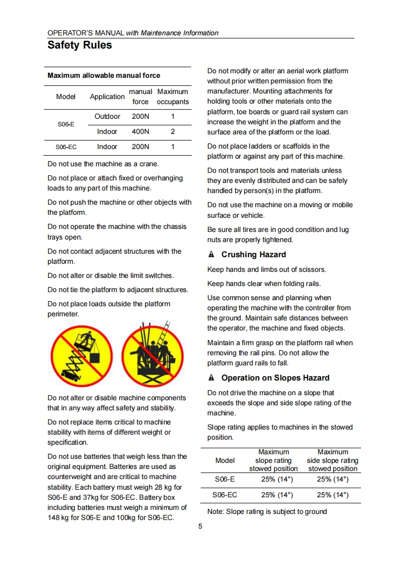 Dingli-S06-E-Operations-Manual操作与维护保养说明书手册