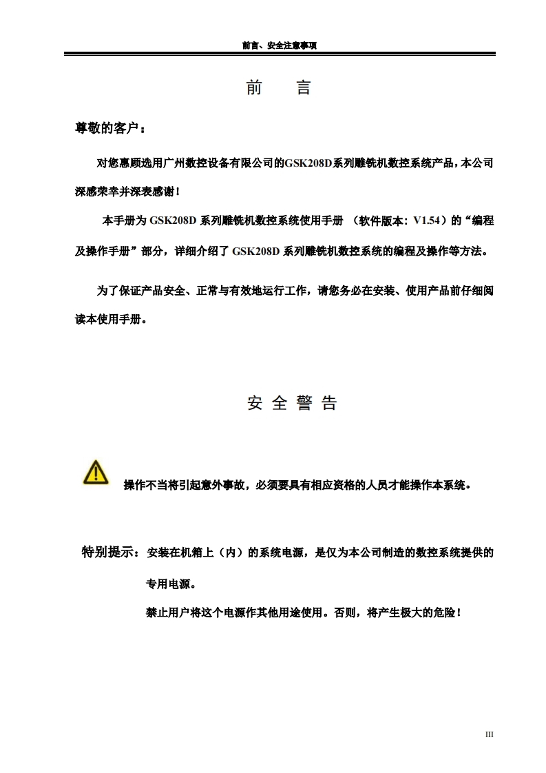 GSK208D系列雕铣机数控系统编程操作手册2023年4月第4版定稿找手册网4小时前发布关注私信11.86MB336页039GSK208D系列雕铣机数控系统编程操作手册2023年4月第4版定稿此内容为付费资源,请付费后查看¥29¥31黄金会员免费钻石会员免费立即购买您当前未登录!建议登陆后购买,可保存购买订单付费资源 第1页 / 共336页 第2页 / 共336页 第3页 / 共336页 第4页 / 共336页 第5页 / 共336页 第6页 / 共336页 第7页 / 共336页 第8页 / 共336页 第9页 / 共336页 第10页 / 共336页 试读已结束,还剩326页,您可下载完整版后进行离线阅读 THE END广州数控 文本预览 米在本使用手册中,我们将尽力叙述各种与GSK208D系列雕铣机数控系统操作相关的事项。限于篇幅限制及产品具体使用等原因,不可能对系列系统产品中所有不必做或不能做的操作进行详细的叙述。因此,本使用手册中没有特别指明的事项均视为“不可能”或“不允许”进行的操作。半本使用手册的版权,归广州数控设备有限公司所有,任何单位与个人进行出版或复印均属于非法行为,广州数控设备有限公司将保留追究其法律责任的权利。 查看更多 收起部分 喜欢就支持一下吧收藏