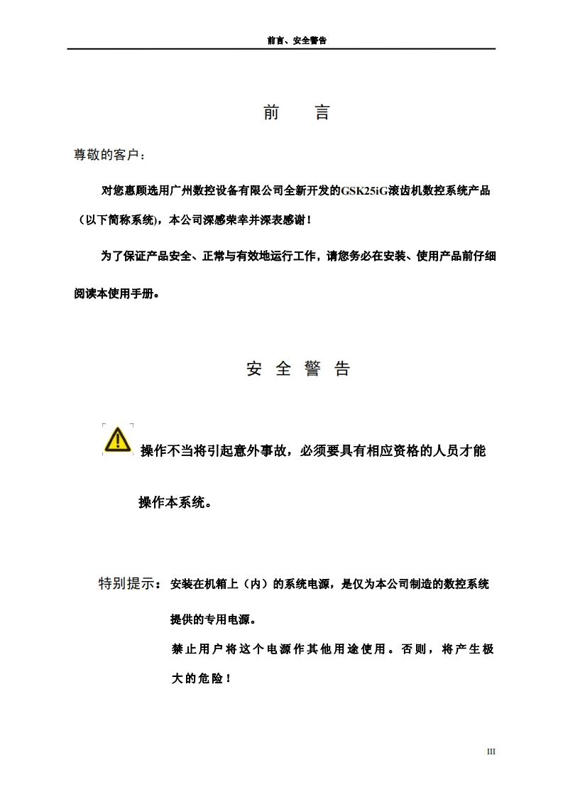 GSK25iG使用手册2015年元月第1版找手册网4小时前发布关注私信7.85MB372页021GSK25iG使用手册2015年元月第1版此内容为付费资源,请付费后查看¥29¥31黄金会员免费钻石会员免费立即购买您当前未登录!建议登陆后购买,可保存购买订单付费资源 第1页 / 共372页 第2页 / 共372页 第3页 / 共372页 第4页 / 共372页 第5页 / 共372页 第6页 / 共372页 第7页 / 共372页 第8页 / 共372页 第9页 / 共372页 第10页 / 共372页 试读已结束,还剩362页,您可下载完整版后进行离线阅读 THE END广州数控 文本预览 k在本使用手册中,我们将尽力叙述各种与GSK25G滚齿机数控系统操作相关的事项。限于篇幅限制及产品具体使用等原因,不可能对系统中所有不必做或不能做的操作进行详细的叙述。因此,本使用手册中没有特别指明的事项均视为“不可能”或“不允许”进行的操作。苄本使用手册的版权,归广州数控设备有限公司所有,任何单位与个人进行出版或复印均属于非法行为,广州数控设备有限公司将保留追究其法律责任的权利。1 查看更多 收起部分 喜欢就支持一下吧收藏