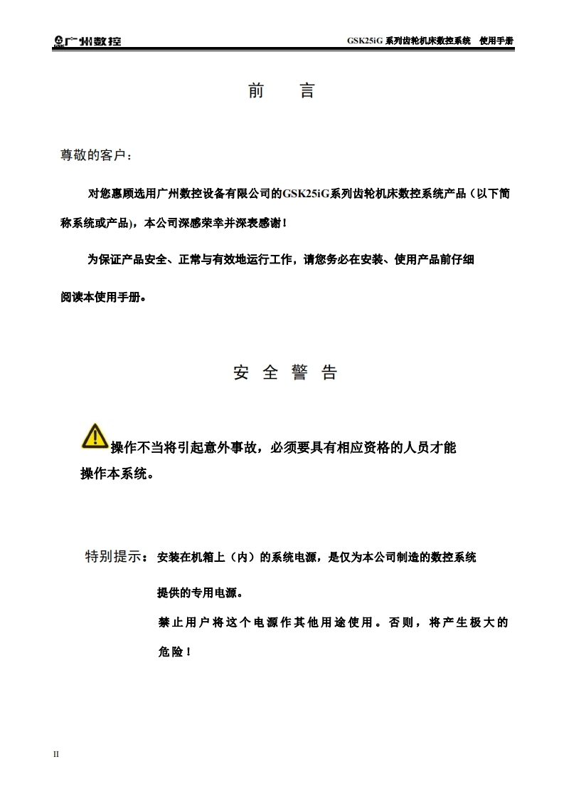 GSK25iG系列齿轮机床数控系统使用手册2024年4月第1版0520定找手册网4小时前发布关注私信11.67MB308页044GSK25iG系列齿轮机床数控系统使用手册2024年4月第1版0520定此内容为付费资源,请付费后查看¥29¥31黄金会员免费钻石会员免费立即购买您当前未登录!建议登陆后购买,可保存购买订单付费资源 第1页 / 共308页 第2页 / 共308页 第3页 / 共308页 第4页 / 共308页 第5页 / 共308页 第6页 / 共308页 第7页 / 共308页 第8页 / 共308页 第9页 / 共308页 第10页 / 共308页 试读已结束,还剩298页,您可下载完整版后进行离线阅读 THE END广州数控 文本预览 米在本使用手册中,我们将尽力叙述各种与GSK25iG系列齿轮机床数控系统操作相关的事项。限于篇幅限制及产品具体使用等原因,不可能对系统中所有不必做或不能做的操作进行详细的叙述。因此,本使用手册中没有特别指明的事项均视为“不可能”或“不允许”进行的操作。半本使用手册的版权。归广州数控设备有限公司所有,任何单位与个人进行出版或复印均属于非法行为,广州数控设备有限公司将保留追究其法律责任的权利。 查看更多 收起部分 喜欢就支持一下吧收藏