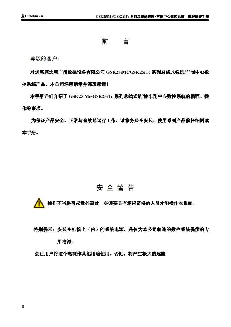 GSK25iMcGSK25iTc系列总线式数控系统编程操作手册2022年7月第2版定找手册网4小时前发布关注私信24.07MB449页028GSK25iMcGSK25iTc系列总线式数控系统编程操作手册2022年7月第2版定此内容为付费资源,请付费后查看¥29¥31黄金会员免费钻石会员免费立即购买您当前未登录!建议登陆后购买,可保存购买订单付费资源 第1页 / 共449页 第2页 / 共449页 第3页 / 共449页 第4页 / 共449页 第5页 / 共449页 第6页 / 共449页 第7页 / 共449页 第8页 / 共449页 第9页 / 共449页 第10页 / 共449页 试读已结束,还剩439页,您可下载完整版后进行离线阅读 THE END广州数控 文本预览 丧在本使用手册中,我们将尽力叙述各种与GSK25iMc/GSK25iTc系列总线式铣削/车削中心数控系统操作相关的事项。限于篇幅限制及产品具体使用等原因,不可能对数控系统中所有不必做和/或不能做的操作进行详细的叙述。因此,本使用手册中没有特别指明的事项均视为“不可能”或“不允许”进行的操作。半本使用手册的版权,归广州数控设备有限公司所有,任何单位与个人进行出版或复印均属于非法行为,广州数控设备有限公司将保留追究其法律责任的权利。 查看更多 收起部分 喜欢就支持一下吧收藏