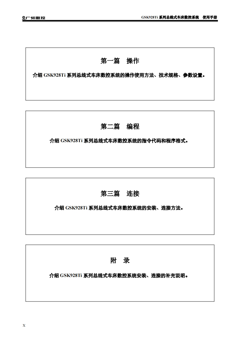 GSK928Ti总线式车床数控系统使用手册2021年3月第1版定找手册网4小时前发布关注私信13.31MB362页048GSK928Ti总线式车床数控系统使用手册2021年3月第1版定此内容为付费资源,请付费后查看¥29¥31黄金会员免费钻石会员免费立即购买您当前未登录!建议登陆后购买,可保存购买订单付费资源 第1页 / 共362页 第2页 / 共362页 第3页 / 共362页 第4页 / 共362页 第5页 / 共362页 第6页 / 共362页 第7页 / 共362页 第8页 / 共362页 第9页 / 共362页 第10页 / 共362页 试读已结束,还剩352页,您可下载完整版后进行离线阅读 THE END广州数控 文本预览 半本使用手册为GSK928T系列总线式车床数拉系统的用户使用手册。在本使用手册中,我们将尽力叙述各种与该系统操作相关的事项。限于篇幅限制及产品具体使用等原因,不可能对系统中所有不必做或不能做的操作进行详细的叙述。因此,本使用手册中没有特别指明的事项均视为“不可能”或“不允许”进行的操作。半本使用手册的版权,归广州数控设备有限公司所有,任何单位与个人进行出版或复印均属于非法行为,广州数控设备有限公司将保留追究其法律责任的权利。 查看更多 收起部分 喜欢就支持一下吧收藏