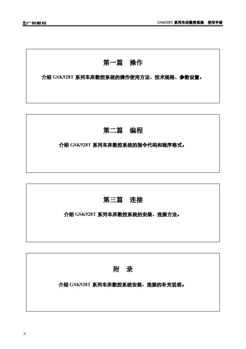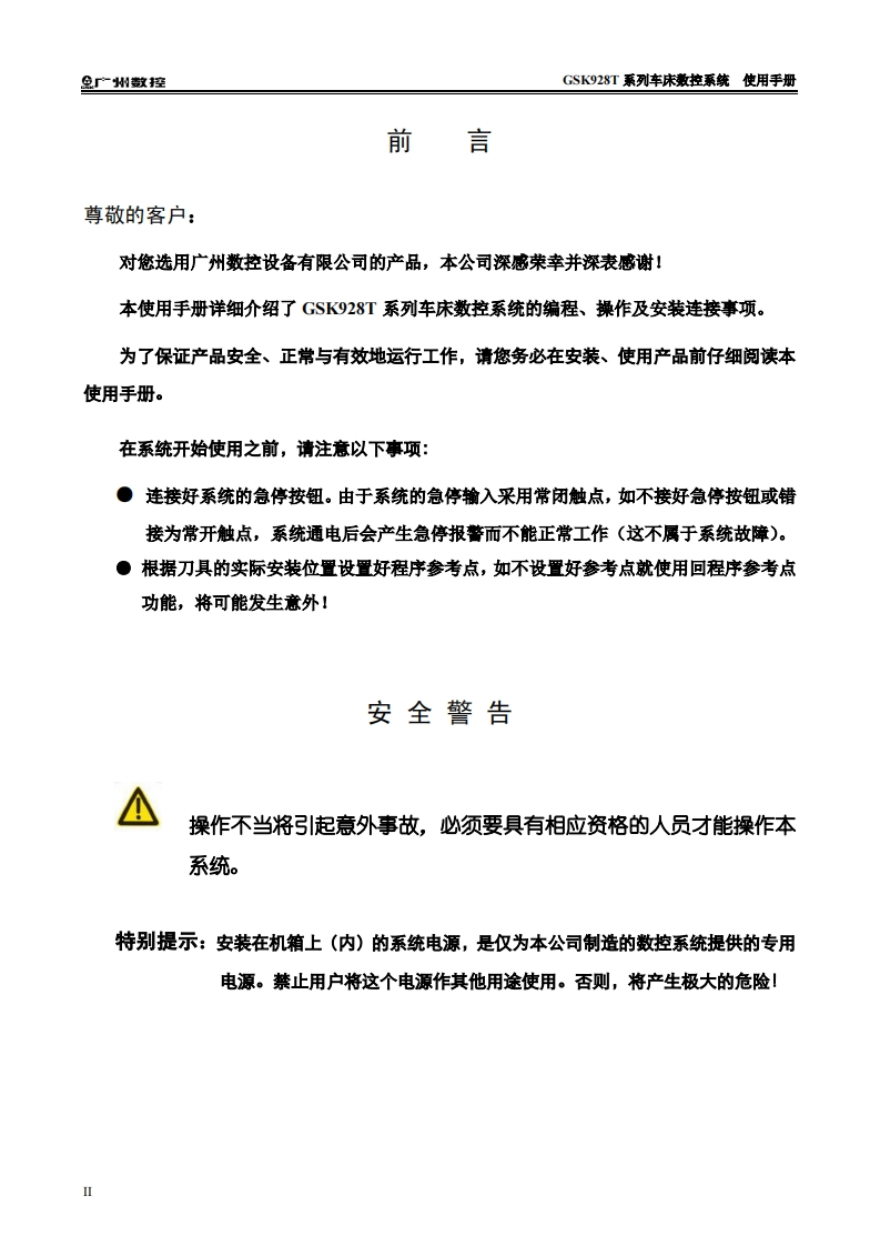GSK928T系列车床数控系统使用手册2022年3月第4版18定找手册网4小时前发布关注私信14.32MB366页029GSK928T系列车床数控系统使用手册2022年3月第4版18定此内容为付费资源,请付费后查看¥29¥31黄金会员免费钻石会员免费立即购买您当前未登录!建议登陆后购买,可保存购买订单付费资源 第1页 / 共366页 第2页 / 共366页 第3页 / 共366页 第4页 / 共366页 第5页 / 共366页 第6页 / 共366页 第7页 / 共366页 第8页 / 共366页 第9页 / 共366页 第10页 / 共366页 试读已结束,还剩356页,您可下载完整版后进行离线阅读 THE END广州数控 文本预览 h本使用手册为GSK928TEa、GSK928TD-L、GSK928TCa-L数控系统的通用手册。衣在本使用手册中,我们将尽力叙述各种与该系统操作相关的事项。限于篇幅限制及产品具体使用等原因,不可能对系统中所有不必做或不能做的操作进行详细的叙述。因此,本使用手册中没有特别指明的事项均视为“不可能”或“不允许”进行的操作。半本使用手册的版权,归广州数控设备有限公司所有,任何单位与个人进行出版或复印均属于非法行为,广州数控设备有限公司将保留追究其法律责任的权利。 查看更多 收起部分 喜欢就支持一下吧收藏