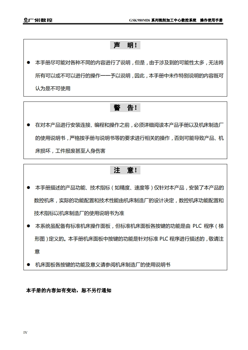 GSK980MDi系列操作使用手册2016年3月第1版29定找手册网5小时前发布关注私信18.79MB504页028GSK980MDi系列操作使用手册2016年3月第1版29定此内容为付费资源,请付费后查看¥29¥31黄金会员免费钻石会员免费立即购买您当前未登录!建议登陆后购买,可保存购买订单付费资源 第1页 / 共504页 第2页 / 共504页 第3页 / 共504页 第4页 / 共504页 第5页 / 共504页 第6页 / 共504页 第7页 / 共504页 第8页 / 共504页 第9页 / 共504页 第10页 / 共504页 试读已结束,还剩494页,您可下载完整版后进行离线阅读 THE END广州数控 文本预览 在本使用手册中,我们将尽力叙述各种与GSK980MDi系列铣削加工中心数控系统使用操作相关的事项。限于篇幅限制及产品具体使用等原因,不可能对此系列数控系统中所有不必做和/或不能做的操作进行详细的叙述。因此,本使用手册中没有特别指明的事项均视为“不可能”或“不允许”进行的操作。半本使用手册的版权,归广州数控设备有限公司所有,任何单位与个人进行出版或复印均属于非法行为,广州数控设备有限公司将保留追究其法律责任的权利。I 查看更多 收起部分 喜欢就支持一下吧收藏