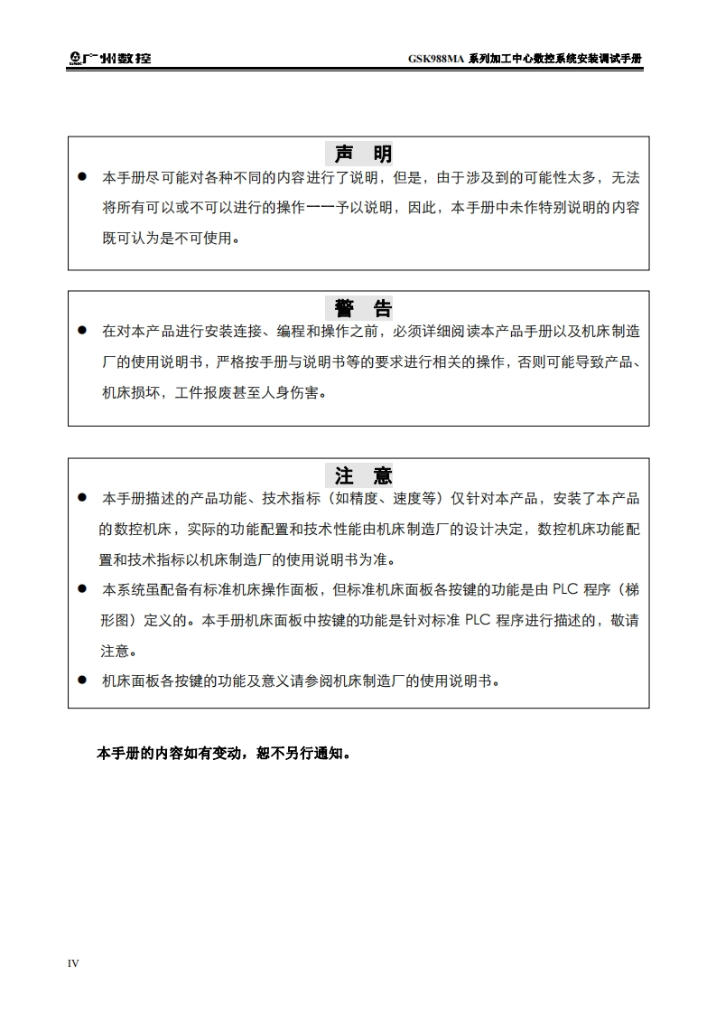GSK988MA系列加工中心数控系统安装调试手册(2017年8月第2版)-20170928定稿找手册网3小时前发布关注私信3.91MB190页039GSK988MA系列加工中心数控系统安装调试手册(2017年8月第2版)-20170928定稿此内容为付费资源,请付费后查看¥29¥31黄金会员免费钻石会员免费立即购买您当前未登录!建议登陆后购买,可保存购买订单付费资源 第1页 / 共190页 第2页 / 共190页 第3页 / 共190页 第4页 / 共190页 第5页 / 共190页 第6页 / 共190页 第7页 / 共190页 第8页 / 共190页 第9页 / 共190页 第10页 / 共190页 试读已结束,还剩180页,您可下载完整版后进行离线阅读 THE END广州数控 文本预览 在本使用手册中,我们将尽力叙述各种与该系列数控系统操作相关的事项。限于篇幅限制及产品具体使用等原因,不可能对系统中所有不必做和/或不能做的操作进行详细的叙述。因此,本使用手册中没有特别指明的事项均视为“不可能”或“不允许”进行的操作。半本使用手册的版权,归广州数控设备有限公司所有,任何单位与个人进行出版或复印均属于非法行为,广州数控设备有限公司将保留追究其法律责任的权利。 查看更多 收起部分 喜欢就支持一下吧收藏