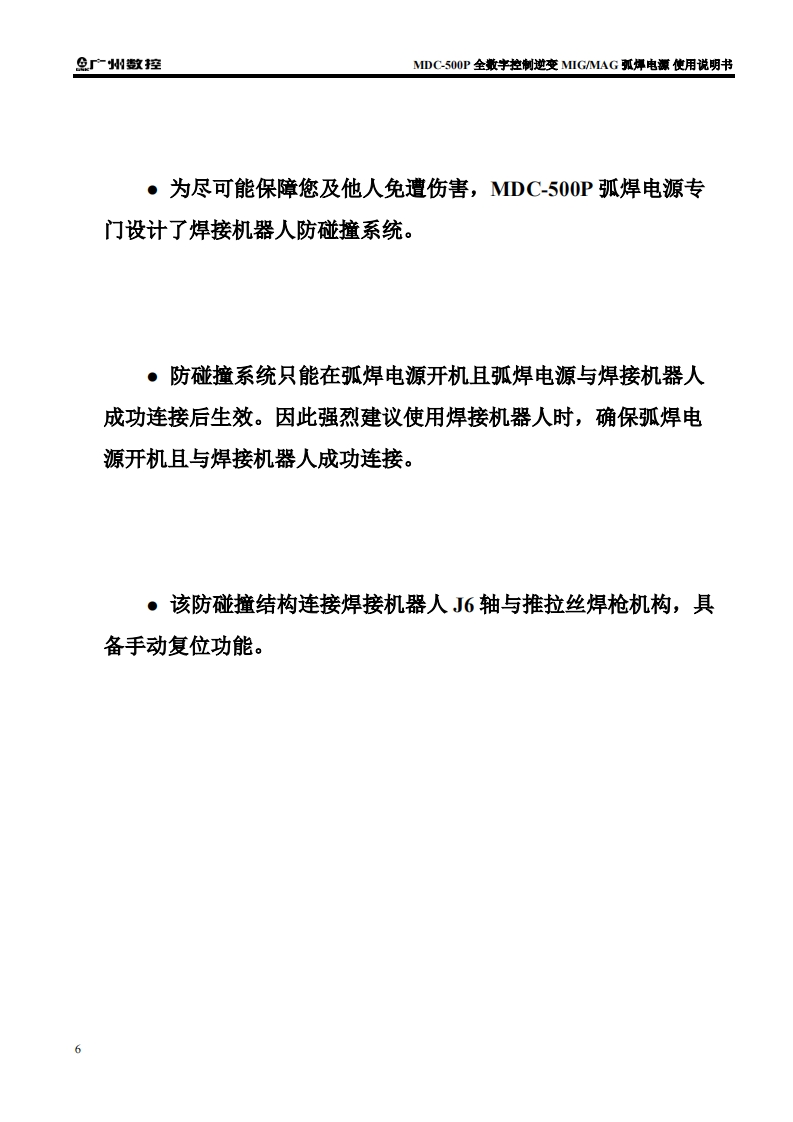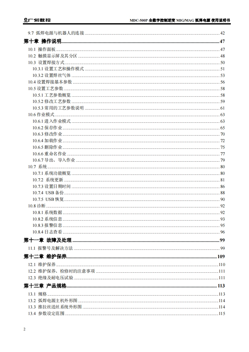 MDC-500P全数字控制逆变MIG-MAG弧焊电源使用说明书2023年8月第2版找手册网1小时前发布关注私信5.97MB119页033MDC-500P全数字控制逆变MIG-MAG弧焊电源使用说明书2023年8月第2版此内容为付费资源,请付费后查看¥29¥31黄金会员免费钻石会员免费立即购买您当前未登录!建议登陆后购买,可保存购买订单付费资源 第1页 / 共119页 第2页 / 共119页 第3页 / 共119页 第4页 / 共119页 第5页 / 共119页 第6页 / 共119页 第7页 / 共119页 第8页 / 共119页 第9页 / 共119页 第10页 / 共119页 试读已结束,还剩109页,您可下载完整版后进行离线阅读 THE END广州数控 文本预览 染在MDC-500P全数字控制逆变MIG/MAG弧焊电源设备使用说明书中,我们将尽力叙述各种与该弧焊电源操作使用相关的事项。限于篇幅限制及产品具体使用等原因,不可能对设备中所有不必做和或不能做的操作进行详细的叙述。因此,本设备中没有特别指明的事项均视为“不可能”或“不允许”进行的操作。半本使用说明书的版权,归广州数控设备有限公司所有,任何单位与个人进行出版或复印均属于非法行为,广州数控设备有限公司将保留追究其法律责任的权利。 查看更多 收起部分 喜欢就支持一下吧收藏