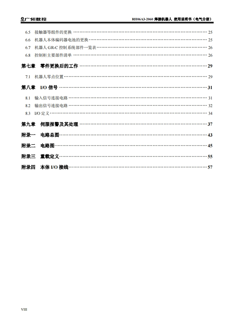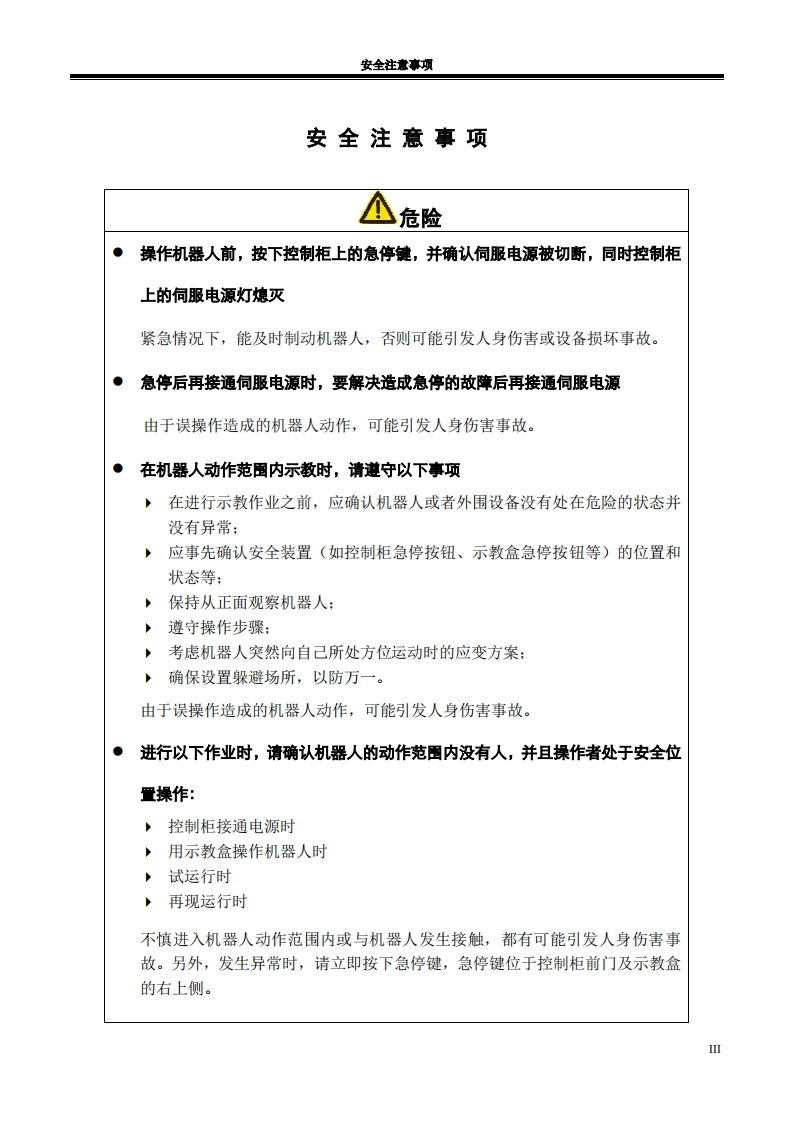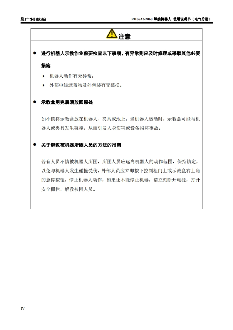 RH06A3-2060焊接机器人使用说明书(电气分册)2020年5月第1版定找手册网1小时前发布关注私信1.99MB68页038RH06A3-2060焊接机器人使用说明书(电气分册)2020年5月第1版定此内容为付费资源,请付费后查看¥29¥31黄金会员免费钻石会员免费立即购买您当前未登录!建议登陆后购买,可保存购买订单付费资源 第1页 / 共68页 第2页 / 共68页 第3页 / 共68页 第4页 / 共68页 第5页 / 共68页 第6页 / 共68页 第7页 / 共68页 第8页 / 共68页 第9页 / 共68页 第10页 / 共68页 试读已结束,还剩58页,您可下载完整版后进行离线阅读 THE END广州数控 文本预览 举在RH06A3-2060焊接机器人使用说明书(电气分册)中,我们将尽力叙述各种与该机器人产品电气使用操作相关的事项。限于篇幅限制及产品具体使用等原因,不可能对产品中所有不必做和/或不能做的操作进行详细的叙述。因此,本产品中没有特别指明的事项均视为“不可能”或“不允许”进行的操作。举本使用说明书的版权,归广州数控设备有限公司所有,任何单位与个人进行出版或复印均属于非法行为,广州数控设备有限公司将保留追究其法律责任的权利。1 查看更多 收起部分 喜欢就支持一下吧收藏