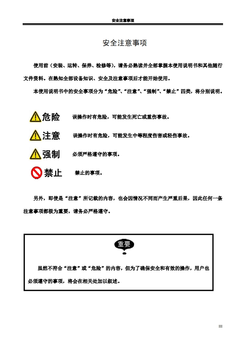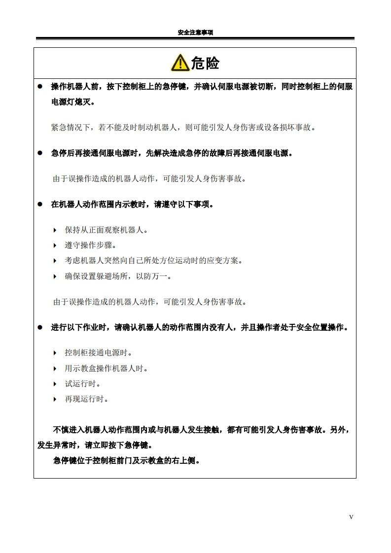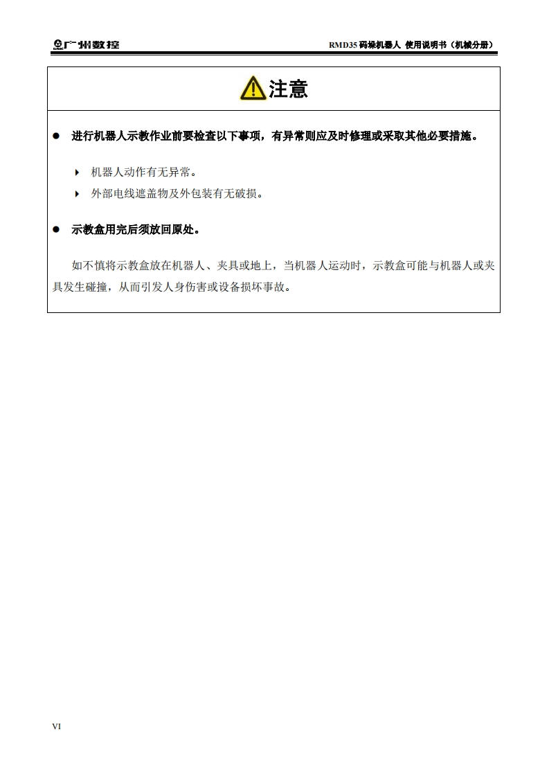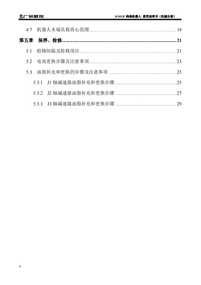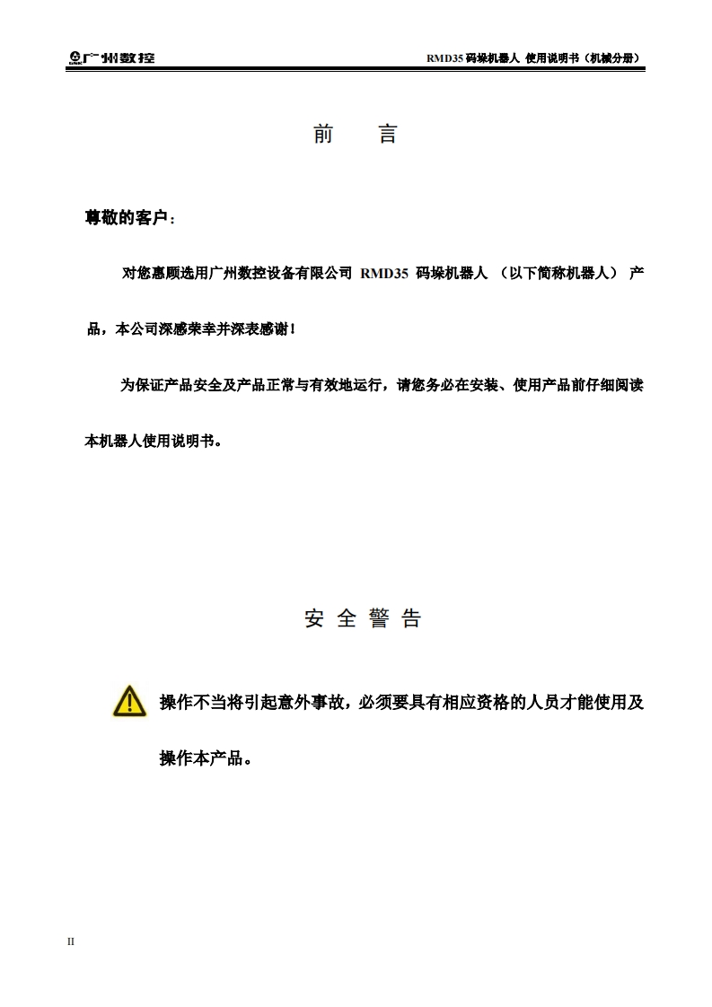 RMD35码垛机器人说明书(机械分册)2022年5月第1版25定找手册网3小时前发布关注私信1.77MB40页030RMD35码垛机器人说明书(机械分册)2022年5月第1版25定此内容为付费资源,请付费后查看¥29¥31黄金会员免费钻石会员免费立即购买您当前未登录!建议登陆后购买,可保存购买订单付费资源 第1页 / 共40页 第2页 / 共40页 第3页 / 共40页 第4页 / 共40页 第5页 / 共40页 第6页 / 共40页 第7页 / 共40页 第8页 / 共40页 第9页 / 共40页 第10页 / 共40页 试读已结束,还剩30页,您可下载完整版后进行离线阅读 THE END广州数控 文本预览 半在本工业机器人产品使用说明书中,我们将尽力叙述各种与该产品使用相关的事项。限于篇幅限制及产品具体使用等原因,不可能对产品中所有不必做和/或不能做的操作进行详细的叙述。因此,本产品使用说明书中没有特别指明的事项均视为“不可能”或“不允许”进行的操作。米本产品使用说明书的版权,归广州数控设备有限公司所有,任何单位与个人进行出版或复印均属于非法行为,广州数控设备有限公司将保留追究其法律责任的权利。I 查看更多 收起部分 喜欢就支持一下吧收藏