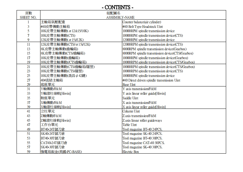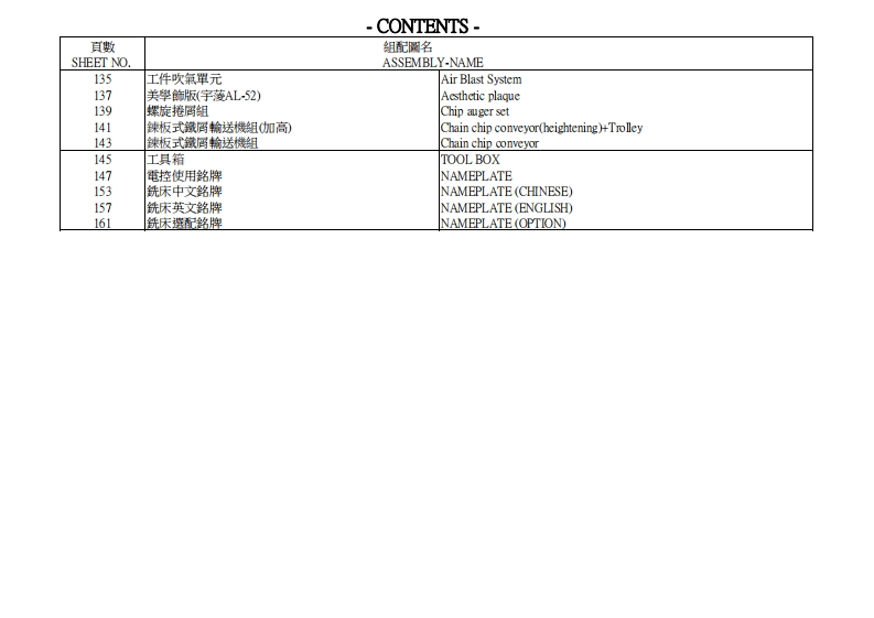 AL52Partlist安装调试说明书手册找手册网3小时前发布关注私信21.77MB168页042AL52Partlist安装调试说明书手册此内容为付费资源,请付费后查看¥19¥21黄金会员免费钻石会员免费立即购买您当前未登录!建议登陆后购买,可保存购买订单付费资源 第1页 / 共168页 第2页 / 共168页 第3页 / 共168页 第4页 / 共168页 第5页 / 共168页 第6页 / 共168页 第7页 / 共168页 第8页 / 共168页 第9页 / 共168页 第10页 / 共168页 试读已结束,还剩158页,您可下载完整版后进行离线阅读 THE ENDATRUMP 文本预览 PARTS LISTATRUMP零件清冊AL52Vertical Machining Center立式綜合加工中心 查看更多 收起部分 喜欢就支持一下吧收藏