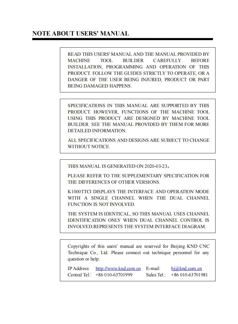 K1000TTCi_编程说明书手册找手册网3小时前发布关注私信2.85MB264页042K1000TTCi_编程说明书手册此内容为付费资源,请付费后查看¥19¥21黄金会员免费钻石会员免费立即购买您当前未登录!建议登陆后购买,可保存购买订单付费资源 第1页 / 共264页 第2页 / 共264页 第3页 / 共264页 第4页 / 共264页 第5页 / 共264页 第6页 / 共264页 第7页 / 共264页 第8页 / 共264页 第9页 / 共264页 第10页 / 共264页 试读已结束,还剩254页,您可下载完整版后进行离线阅读 THE END凯恩帝 文本预览 K1000TTCiK1000TTCi CNC System forDual Channel LathePROGRAMMING MANUALPROGRAMMING MANUALCBD445-0101.870-0107Beijing KND Technique Co.,Ltd.B040B-0101-31N-0101O KD C0.,LTD.WWW.KND.COM.CN 查看更多 收起部分 喜欢就支持一下吧收藏
