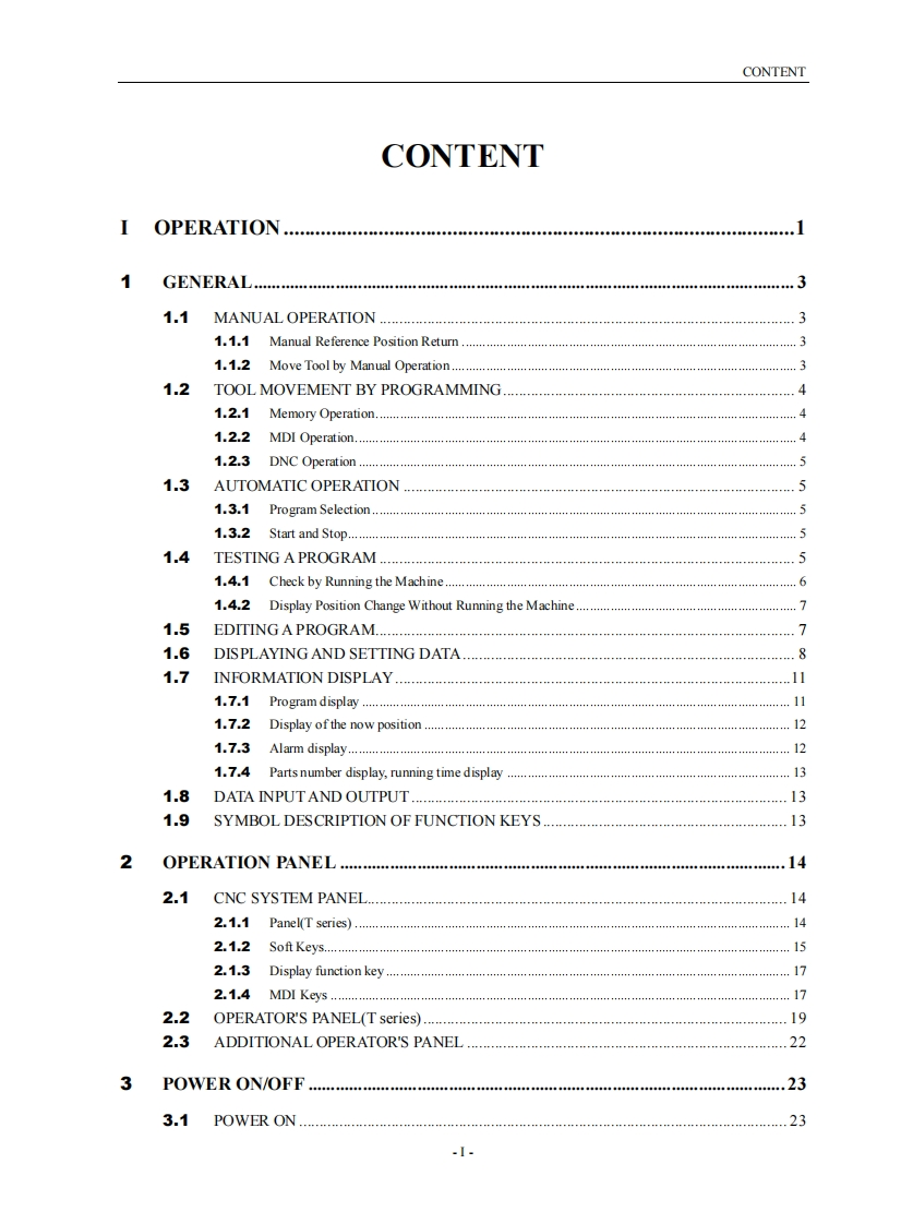 NOTE ABOUT USERS'MANUALREAD THIS USERS'MANUAL AND THE MANUAL PROVIDED BYMACHINE TOOL BUILDERCAREFULLYBEFOREINSTALLATION.PROGRAMMING AND OPERATION OF THISPRODUCT.FOLLOW THE GUIDES STRICTLY TO OPERATE,OR ADANGER OF THE USER BEING INJURED,PRODUCT OR PARTBEING DAMAGED HAPPENSSPECIFICATIONS IN THIS MANUAL ARE SUPPORTED BY THISPRODUCT.HOWEVER,FUNCTIONS OF THE MACHINE TOOLUSING THIS PRODUCT ARE DESIGNED BY MACHINE TOOLBUILDER.SEE THE MANUAL PROVIDED BY THEM FOR MOREDETAILED INFORMATION.ALL SPECIFICATIONS AND DESIGNS ARE SUBJECT TO CHANGEWITHOUT NOTICE.THIS MANUAL IS GENERATED ON 2019-07-24 BASED ON THEFOLLOWING VERSIONS:MAIN BOARD:0051I-0100-W01Z-0101SOFT VERSION:KND TFi A01_V5.0.00c 190125PLC VERSION:KTC STD 3.0 20170525SEE THE ADDITIONAL USERS'MANUALS FOR DIFFERENCEABOUT OTHER VERSIONS.Copyrights of this users'manual are reserved for Beijing KND CNCTechnique Co.,Ltd.Please connect out technique personnel for anyquestion or help.IP Address:http://www.knd.com.cnE-mail:bj@knd.com.cnCentral Tel.:010-63701999Sales Tel..:010-63701981